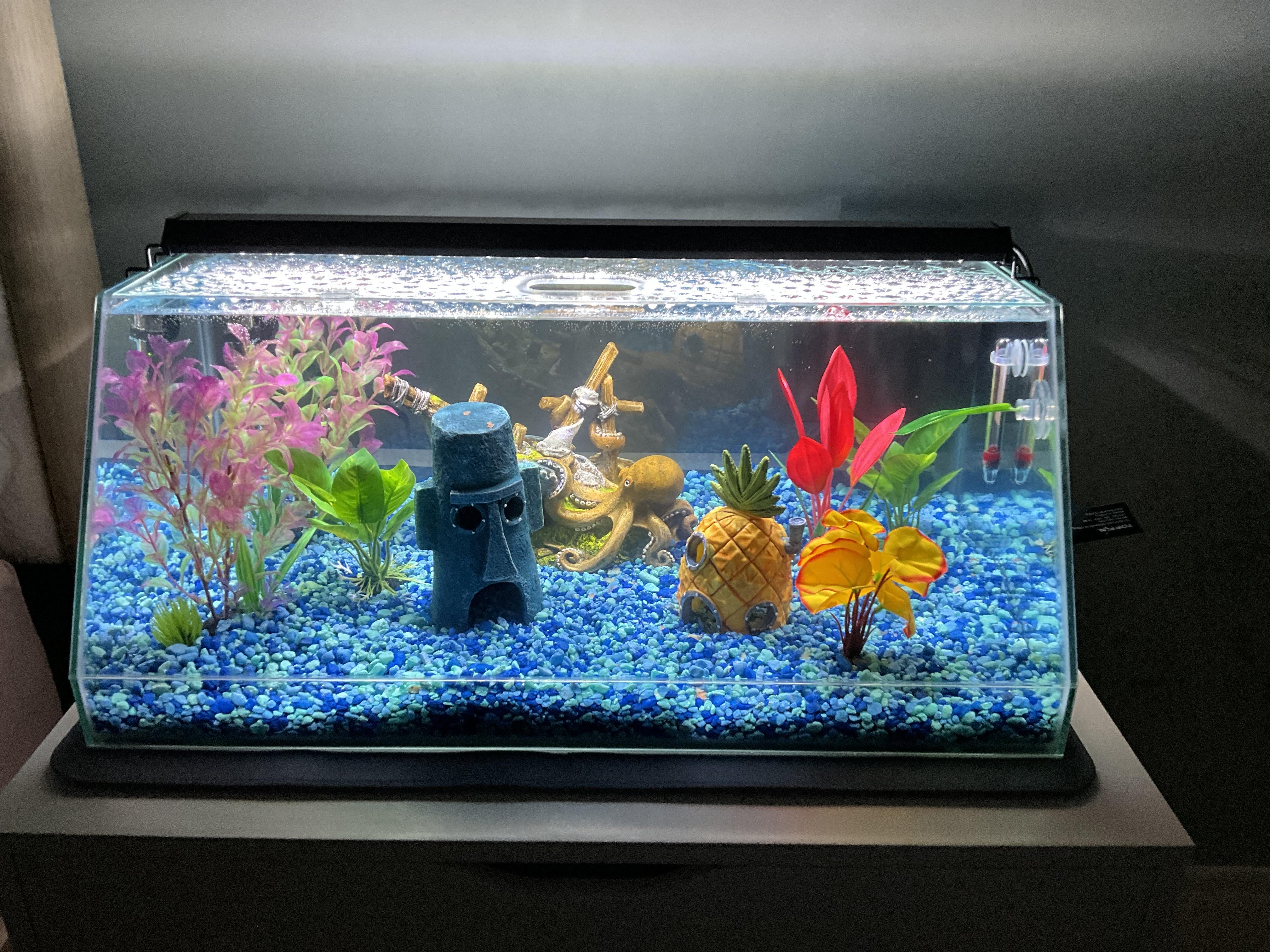 9. Honestly I think it’s great. Could use Patrick’s rock or the krusty krab. Just make sure nothing is leaching chemicals into the water. No idea how to do that though.