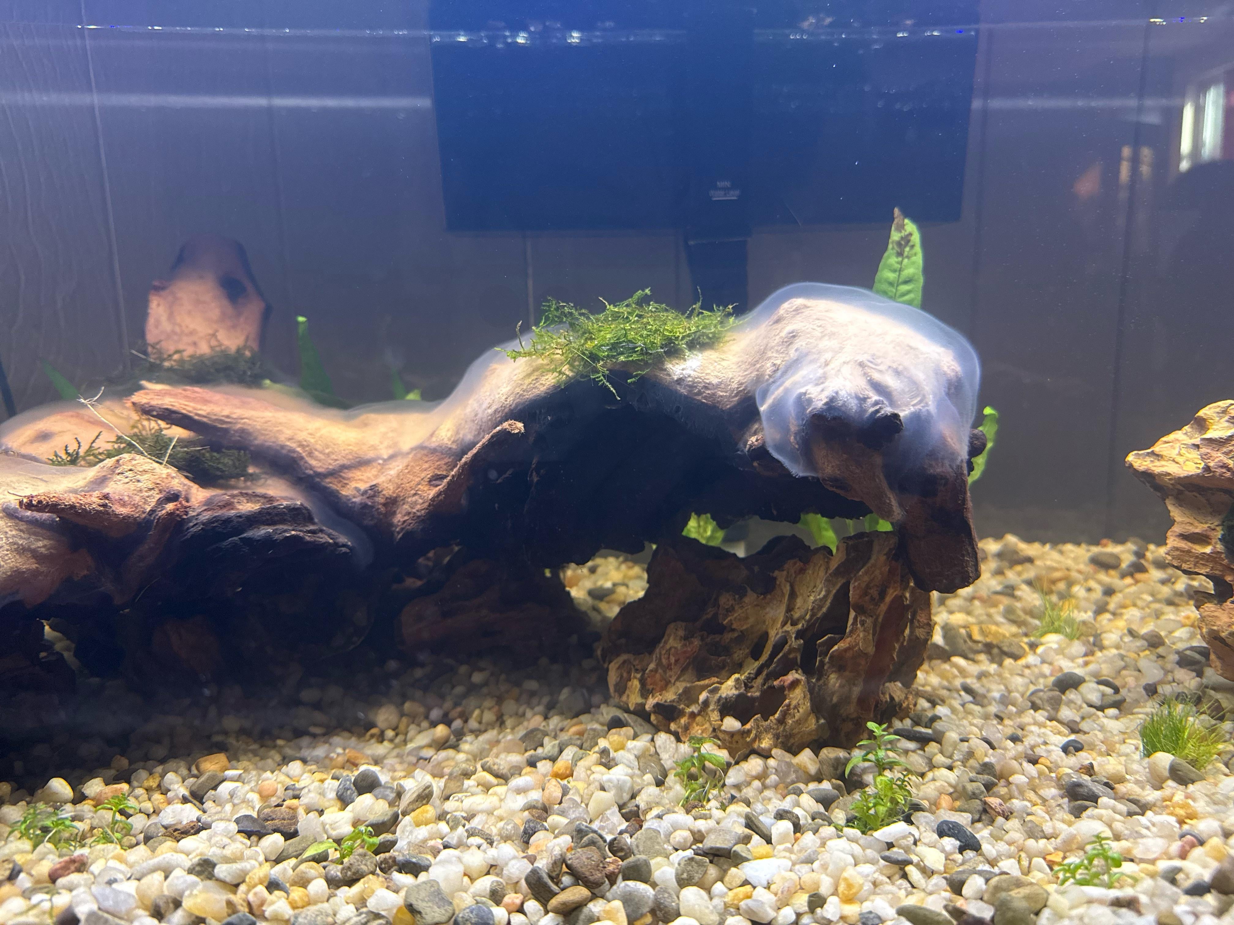 I’m setting up my first tank, and I noticed this ghostly growth on my wood. It started growing two days after I added the wood to the tank. I’ve also noticed some small bubbles occasionally rising from it, so there’s some sort of aerobic activity going on?