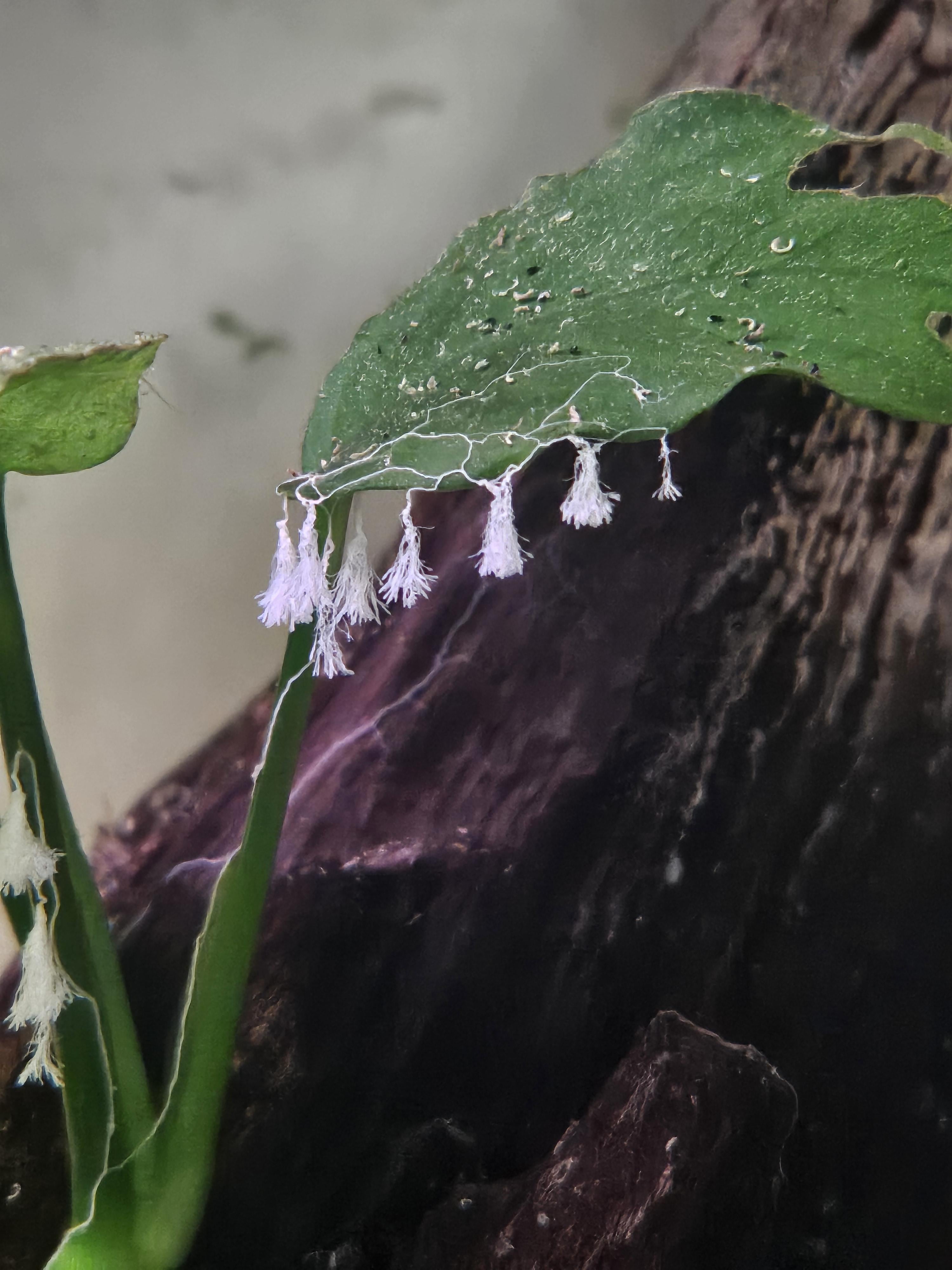 I think it’s slime mold. Not a problem, if so. In fact, they’re very delicate and a sign of high water quality.