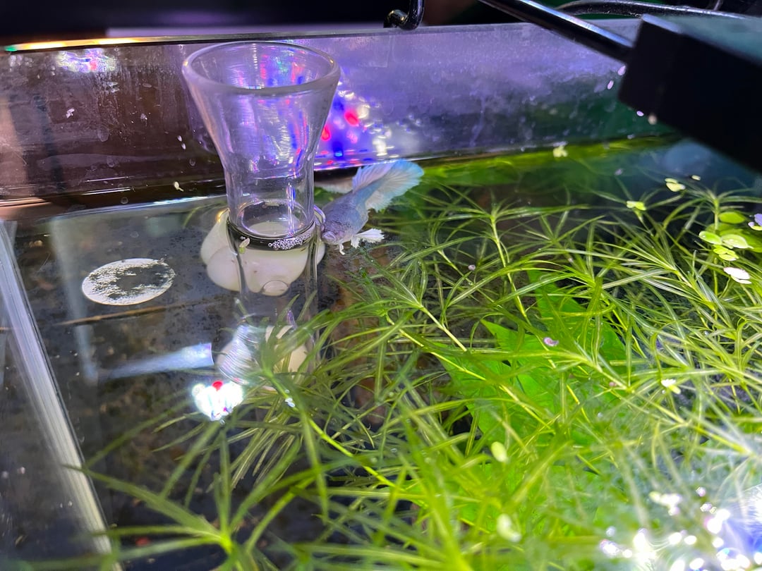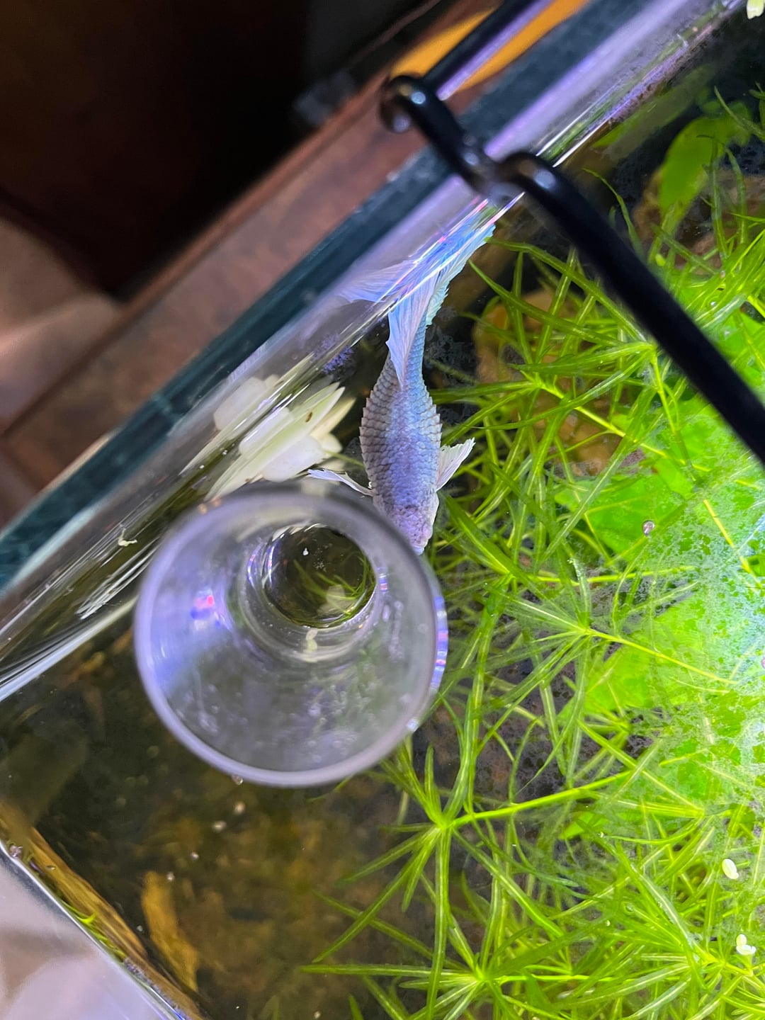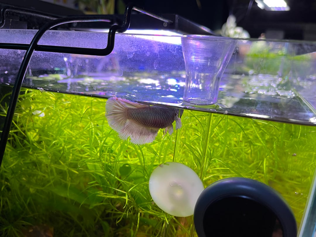 I got her two months ago for free from PetSmart as they were going to euthanize her. I revitalized her and she’s calm and lives in a ten gallon with habrosus corydoras and Neocaridina shrimp. I noticed last night she was at the top but didn’t think much of it as the lights had been out for hours and she normally sleeps there at night. Her diet is frozen bloodworms and brine shrimp. Live moina and fluval bug bites. She also likes stealing the corydora and shrimp food. Everyone else in the tank seems perfectly healthy. Let me know what I should do, I am not new to the hobby but I am new to Bettas.