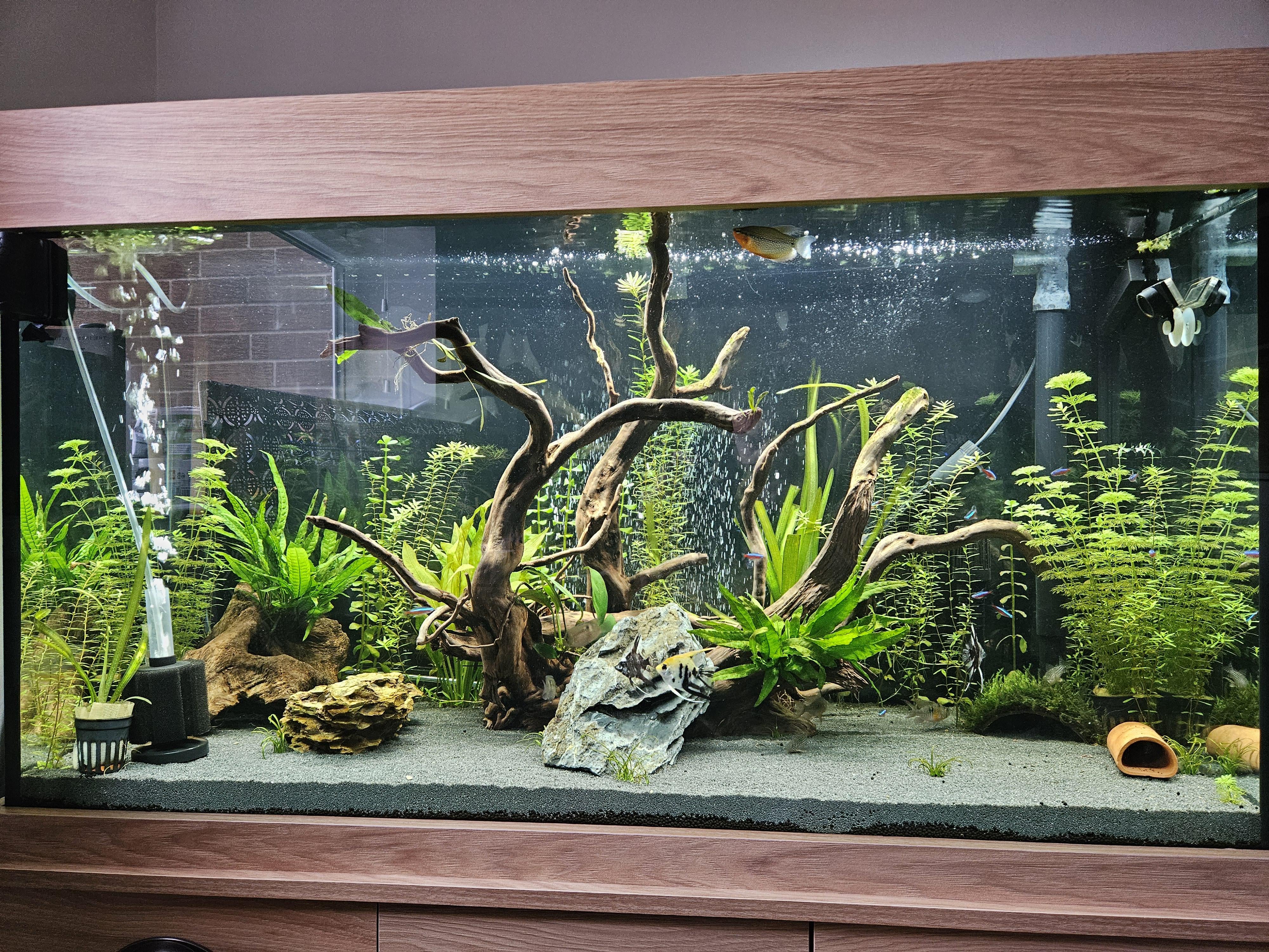 The substrate is really flat, i would of made a slope and added more smaller rocks, still looks good though