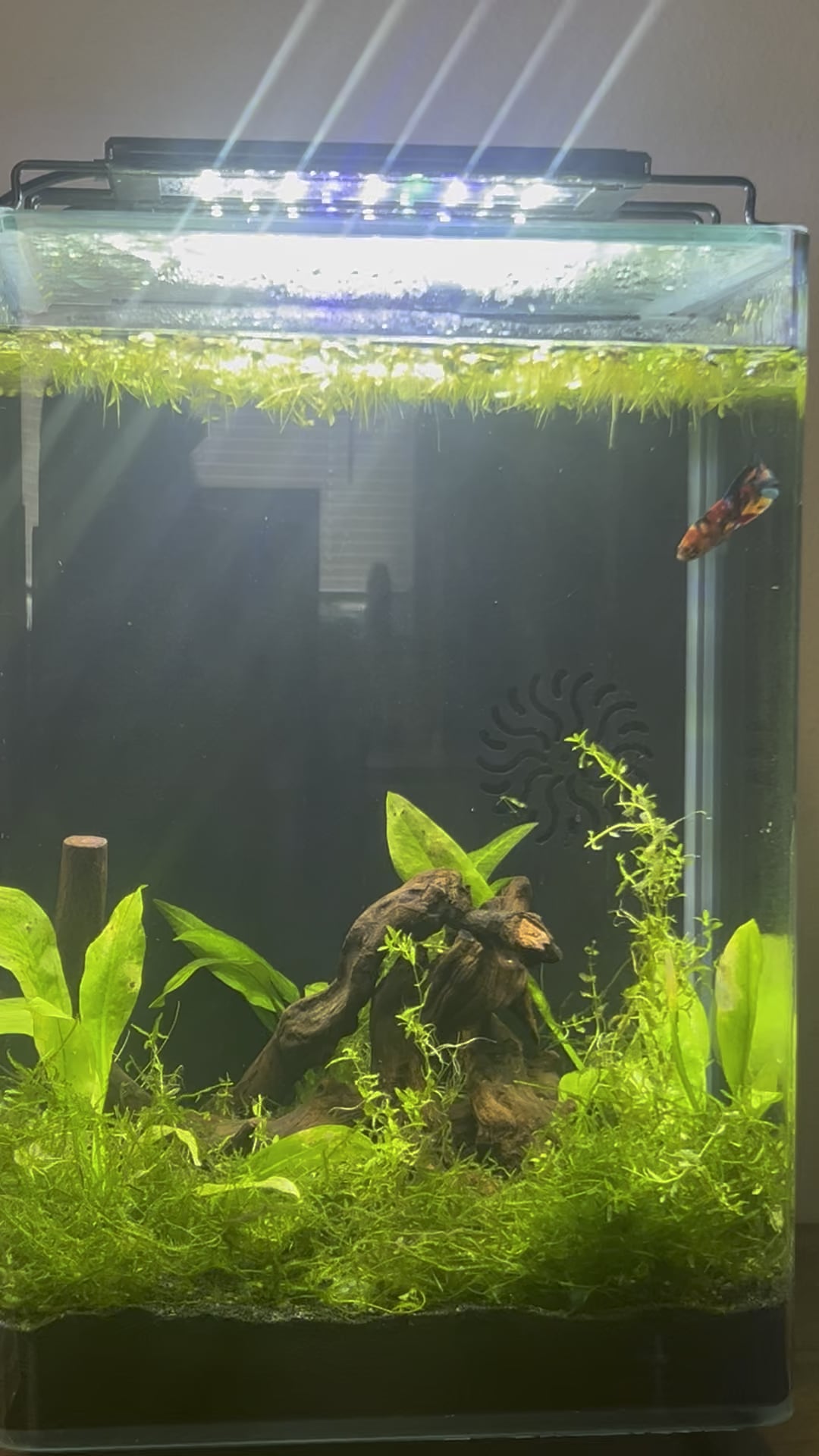 Hi All! First time keeping a betta in a 5 gallon heater tank. Let me know what are your thoughts!
