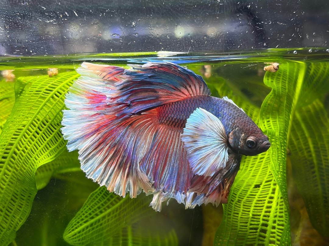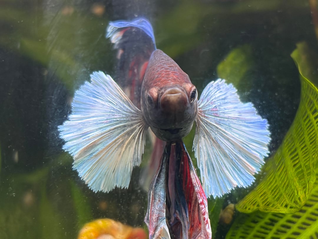 he is gorgeous! does he have issues swimming of fin nipping? and how old is he? i am looking into getting a dumbo in the future!