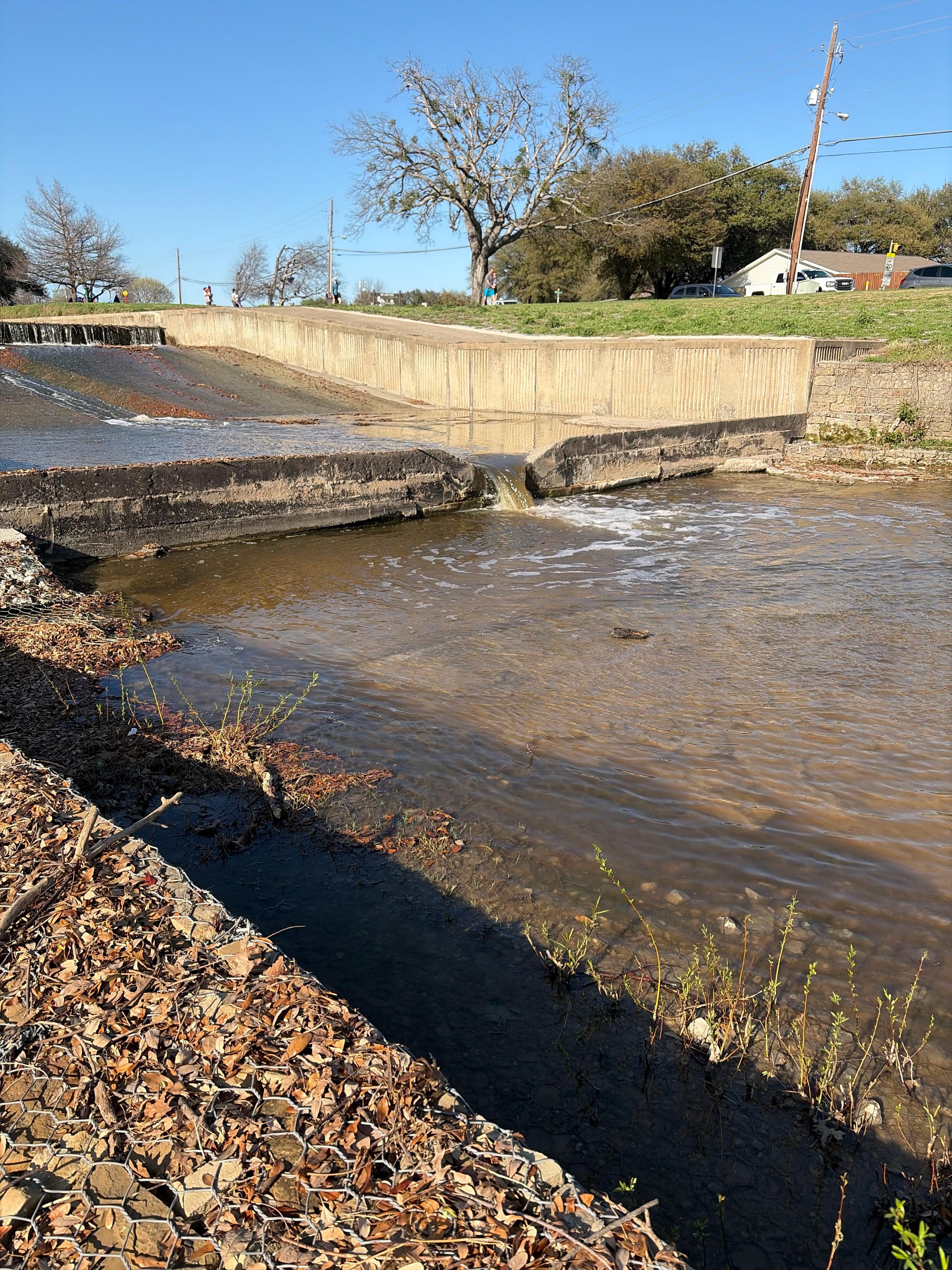 toss a chunk bait right against that wall next to the trough, no weight or anything, leave your bail open, better chances just after sunset, be stealthy, creek fish will clam up if they see you