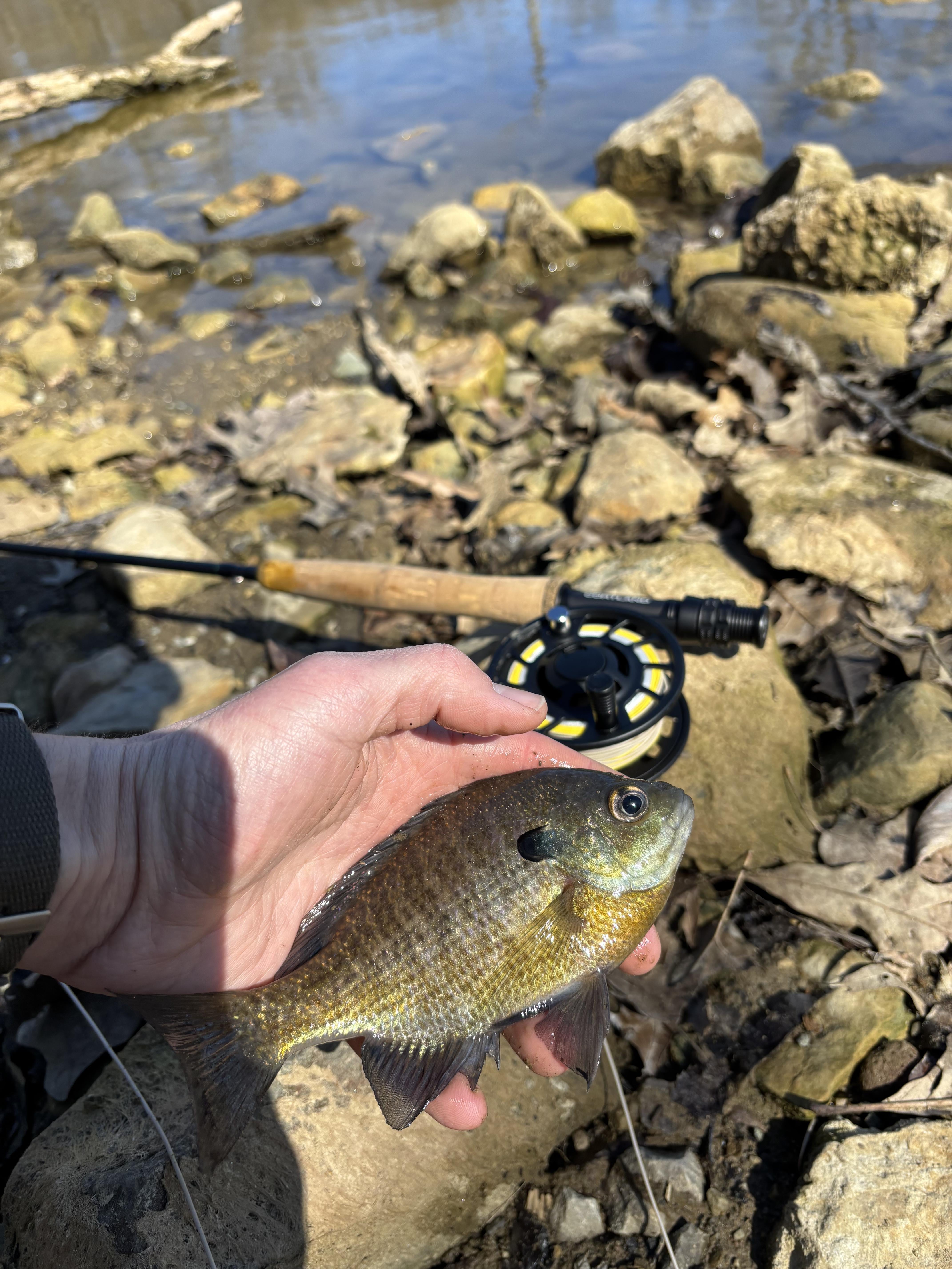 Caught my first fish yesterday on my new fly rod. This is my 4th time out since I got into fly fishing in December and yesterday was the first day I caught a fish. Was using a copper john and a strike indicator. Caught about 7 bluegill in a 30 minute time span. It was nice finally catching a fish after only catching tree branches the last few times out.