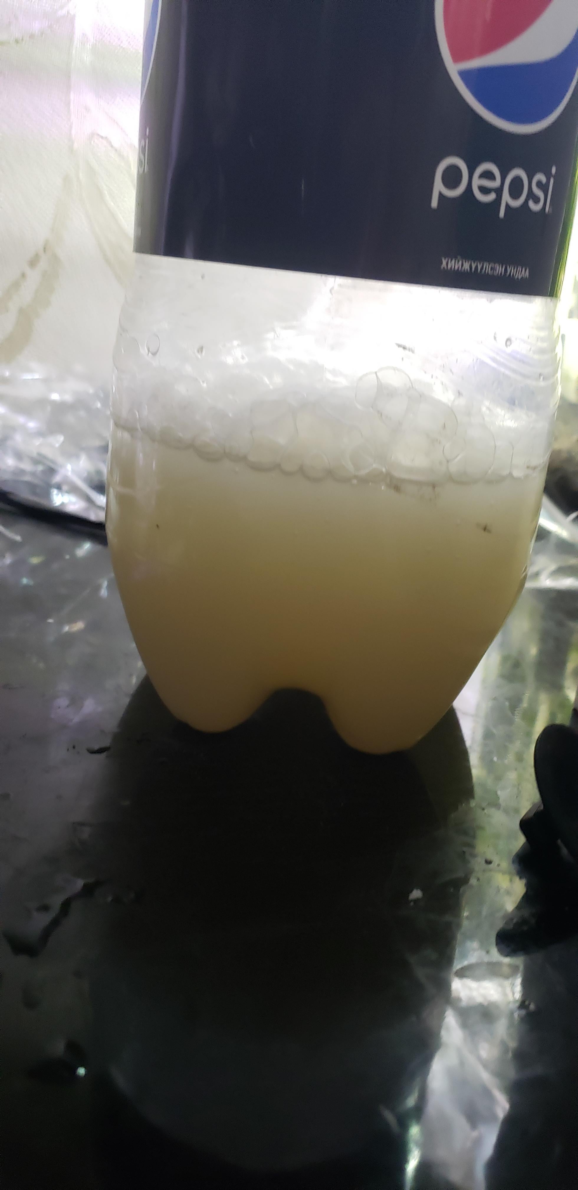 Active the yeast in the warm water for a few minutes. Add the sugar and stir. Use a funnel and pour the mixture into a 2l bottle.