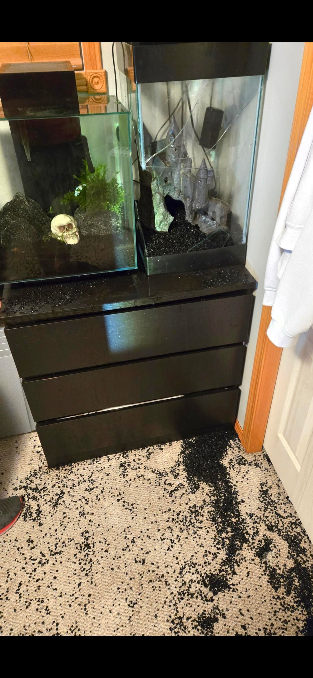 I do have a question though, can it be that the order of events was a little different? The aquarium broke and then then the heater exploded?