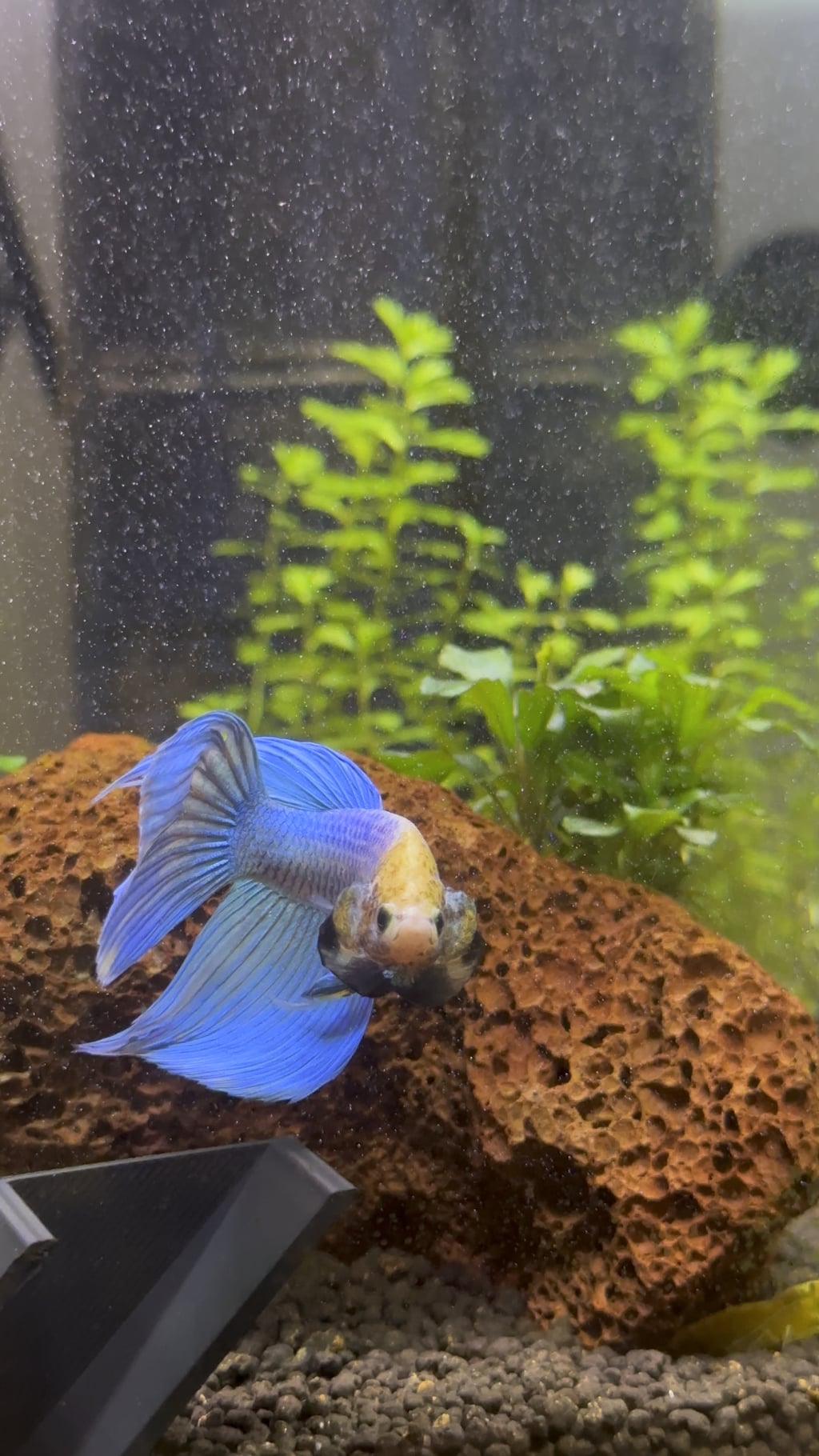 Just an FYI, that hiding plastic thing. I have seen many beta get stuck and injured in them. He is seeing his own reflection.