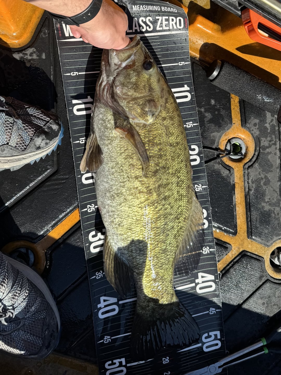 Caught my first kayak fish today, a 19.5″ smallmouth