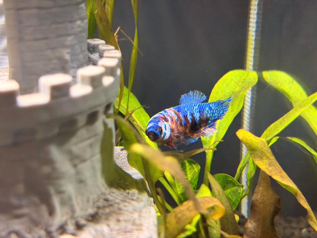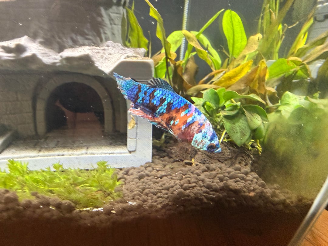 Picked this beauty up from a fish rehoming fb group a few weeks ago. She's from a failed sorority. She seems really happy and loving her new home. Her tail/fins have already started growing back