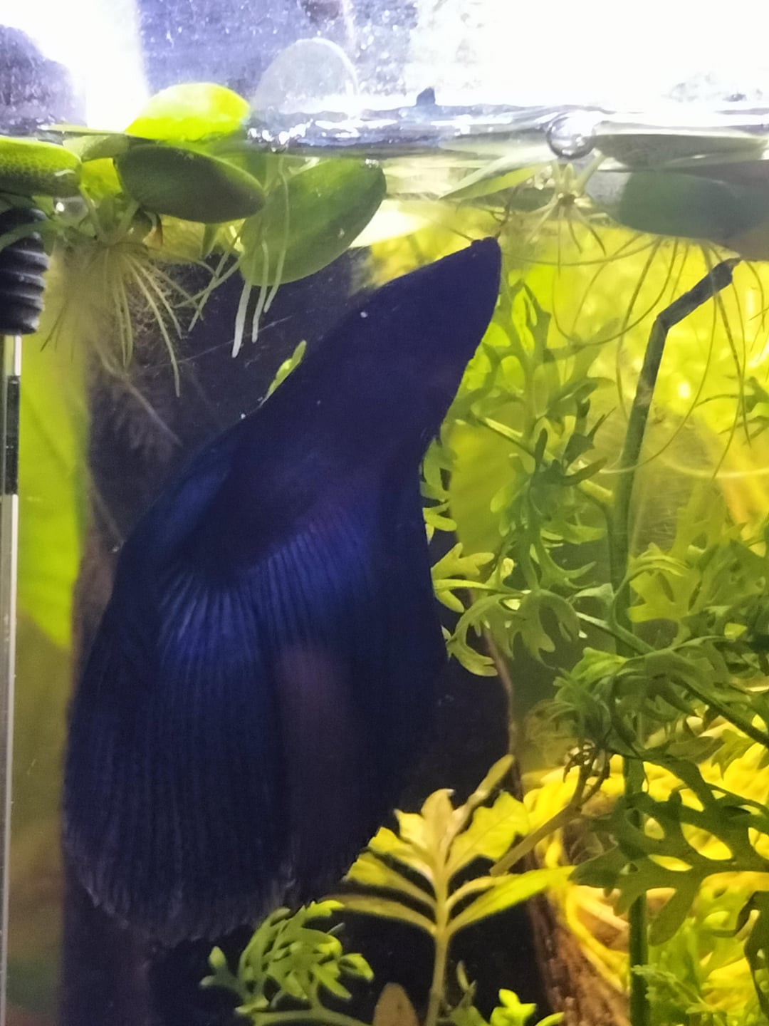 hi! this is my fish Umi who I have had since last Thursday. when I first got him he stayed in the back of his tank for a while but now that he's in the front more I've noticed some jaggedness to his fins? I'm so worried about him but I don't know what it is or what to do. The first two photos are of him now, the second are of him a day or so after I got him and the last one is his tank setup. any ideas?