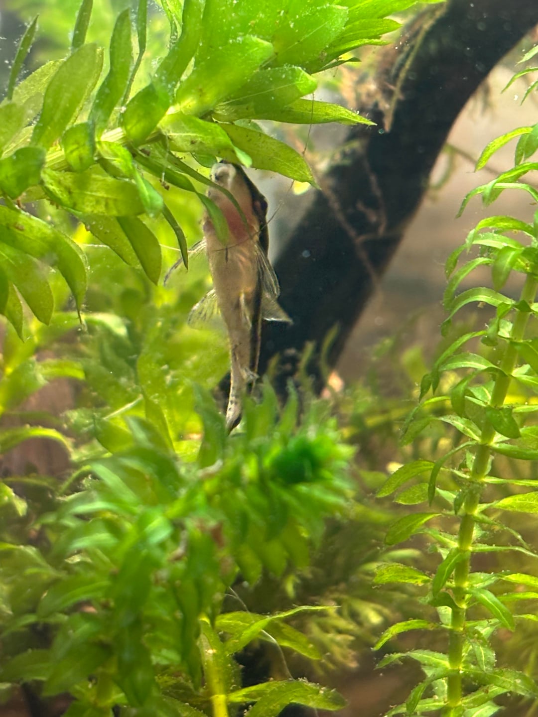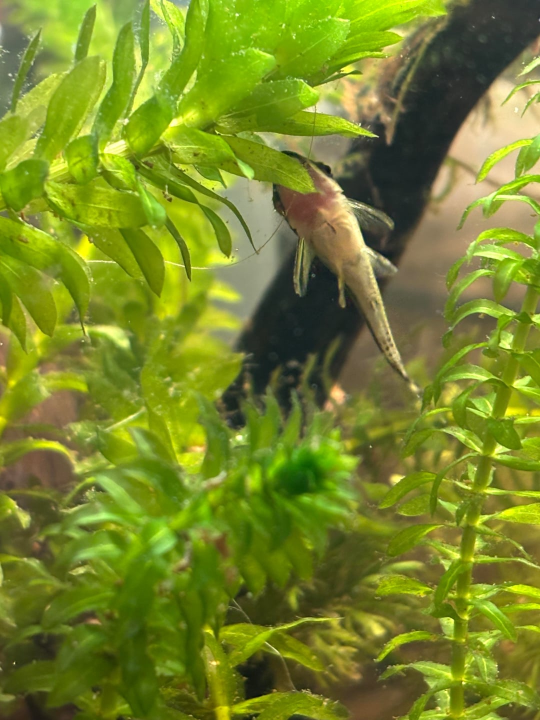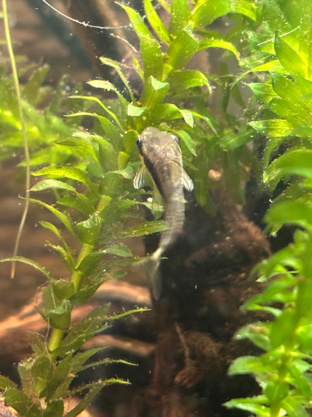 This guy is the bane of my existence. Found out after buying him that they don’t always eat algae wafers and so he’s been living on the biofilm in the tank as well as a weekly blanched cucumber or zucchini slice. It’s a well established, probably coming up to 7-8 months old. I worry he may not be eating enough
