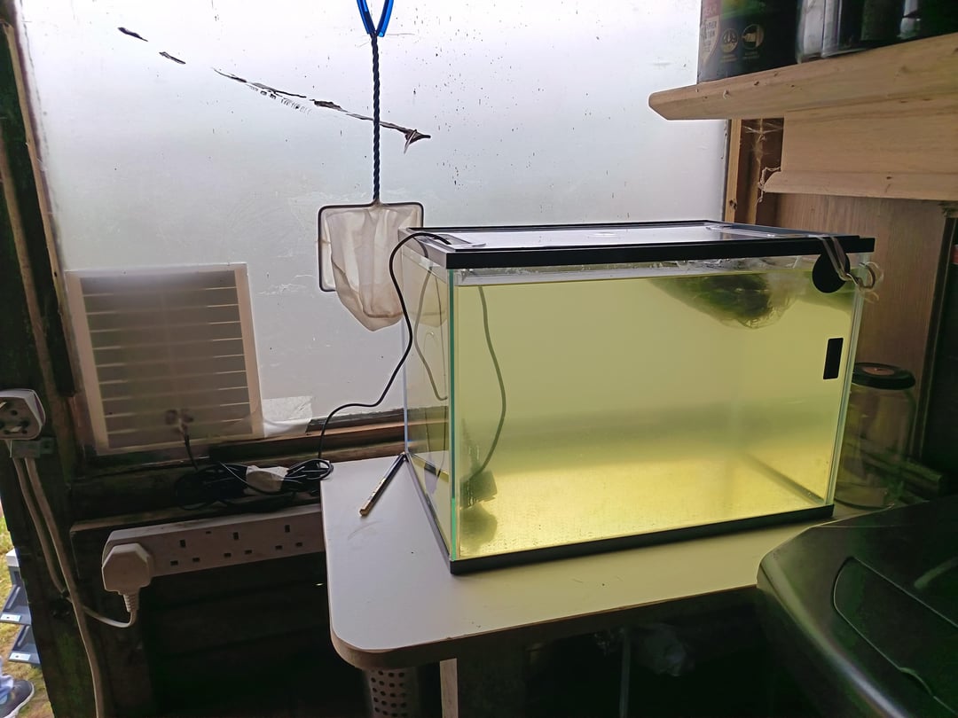 I've used a wee 25l tank and added water from a small water feature I've had outside for couple of years, strained through a brine shrimp net to get rid of debris.. Have a small solar power water feature pump I'm trying to get going g again (not sure if necessary or even any use.