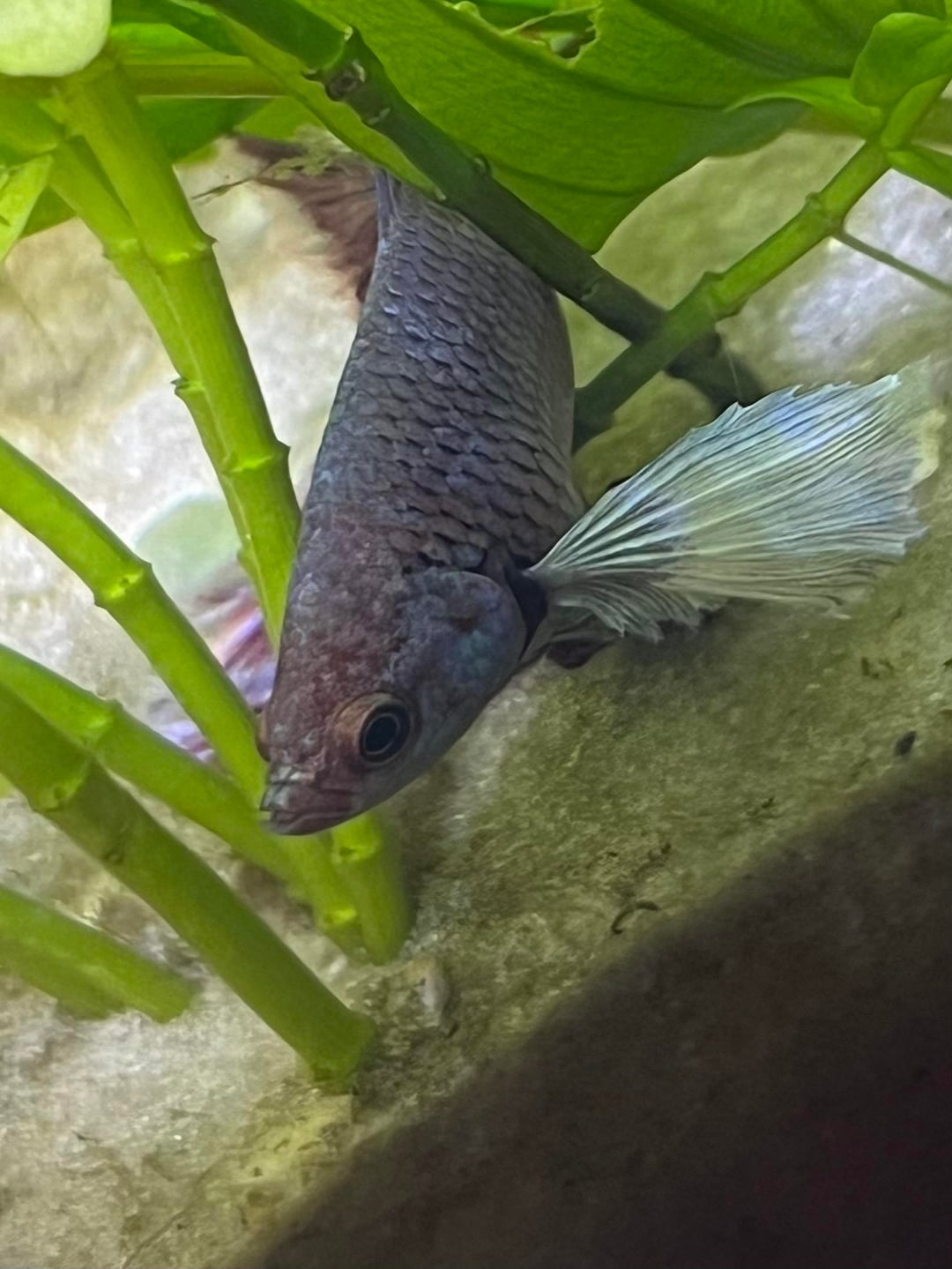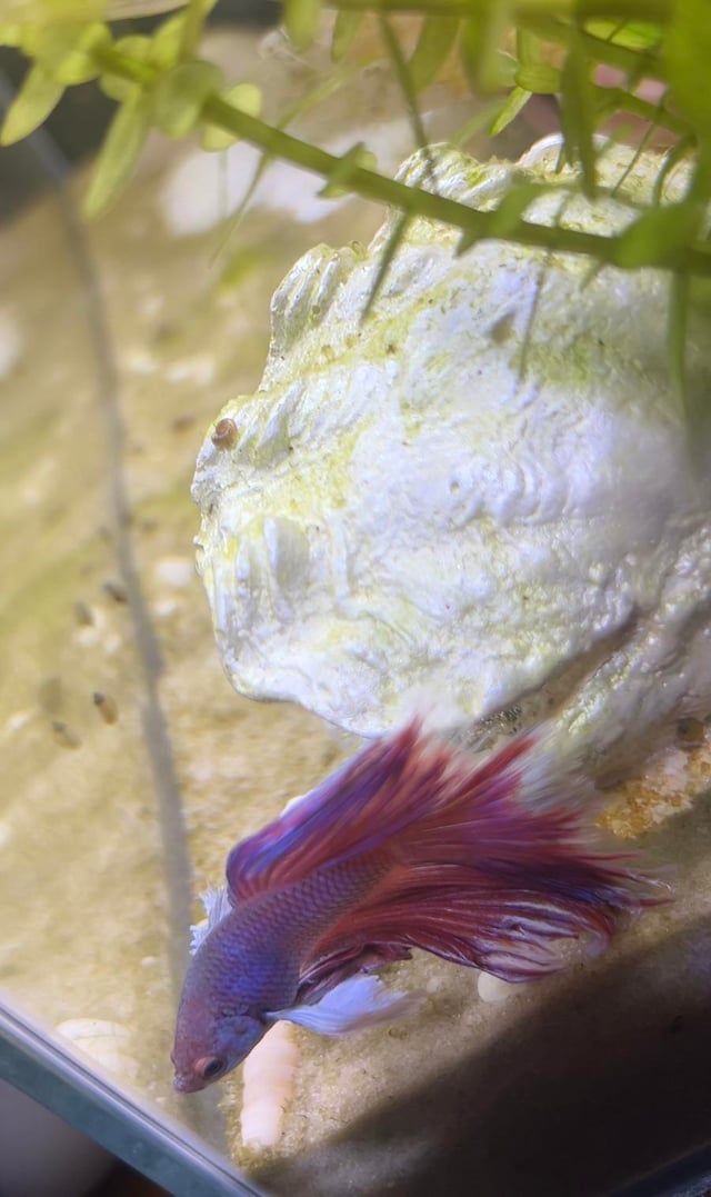 More tank details: He’s in a 21 L tank (5.5 gallons), heater (25-30 Degrees Celsius) and has a bunch of live plants.