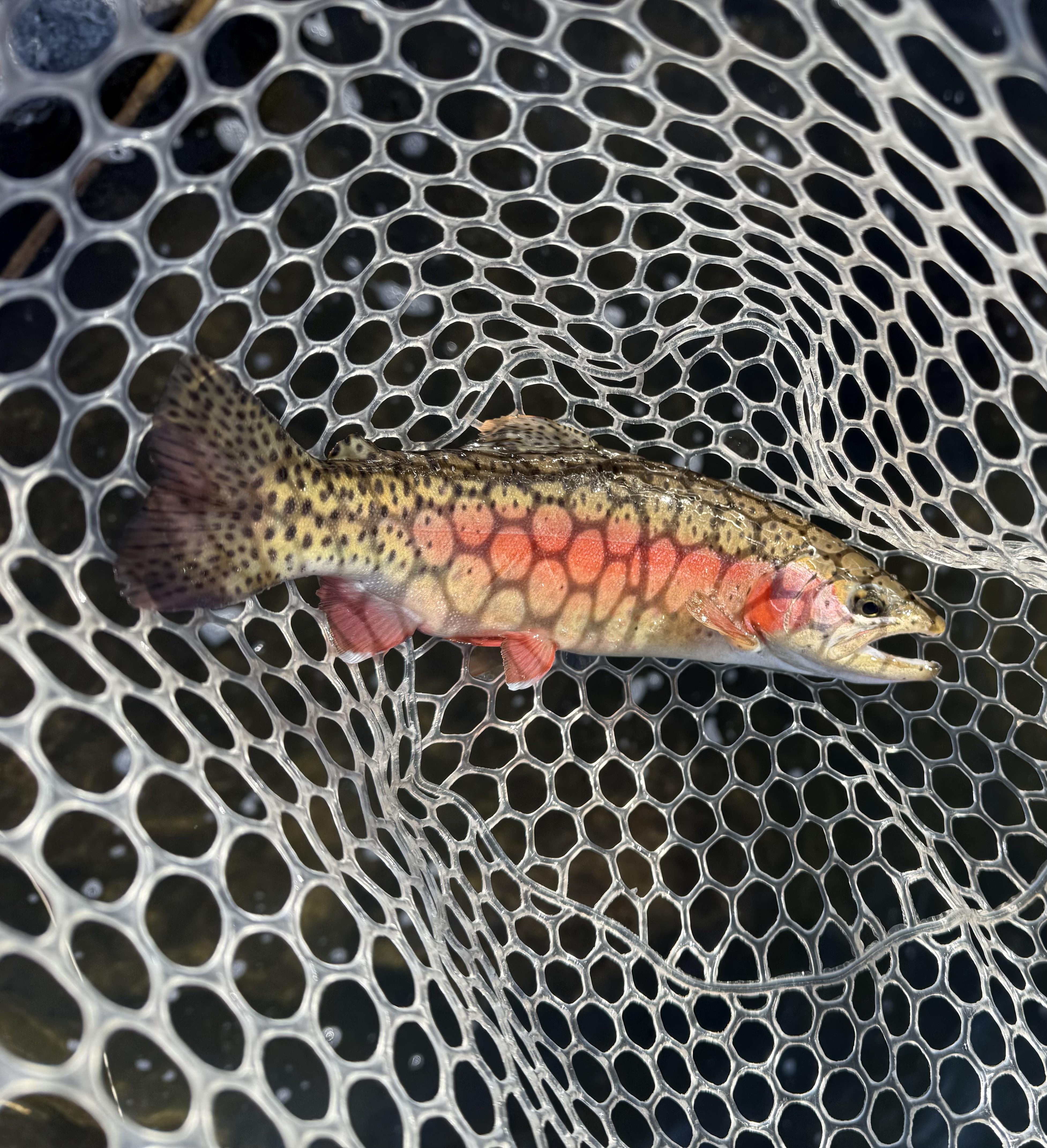 Not the biggest but even the fins were tinted red with white edges. Camera didn’t do it any justice. Caught on my version of a size 20 midge emerger.