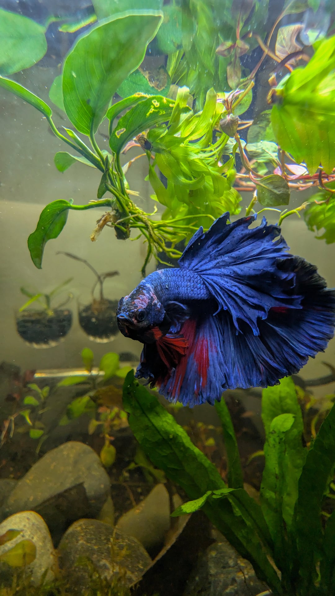 I think my boy, Benito, had fin rot. I didn't get a good photo when I recognized something was off, but I've got some of him today. For those with betta experience, how's my boy looking?