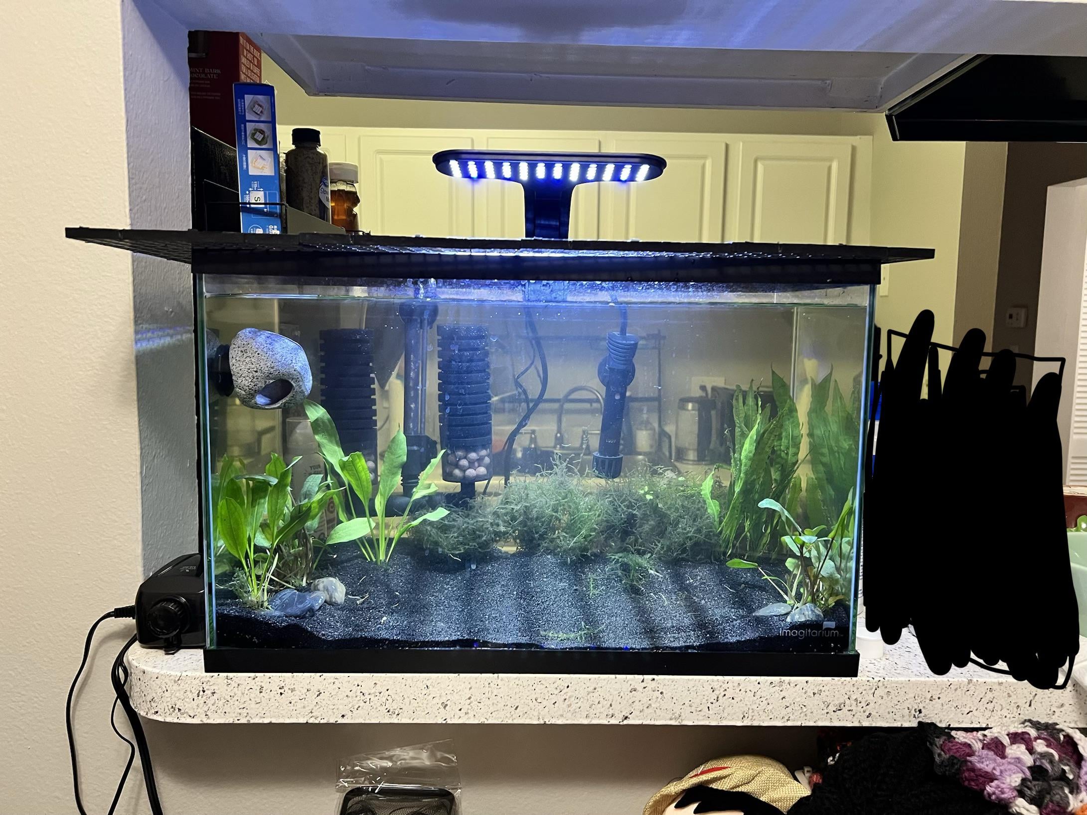 – also need more hiding holes but i’m broke and have a bit of time for the tank to actually cycle so i’m waiting til next check