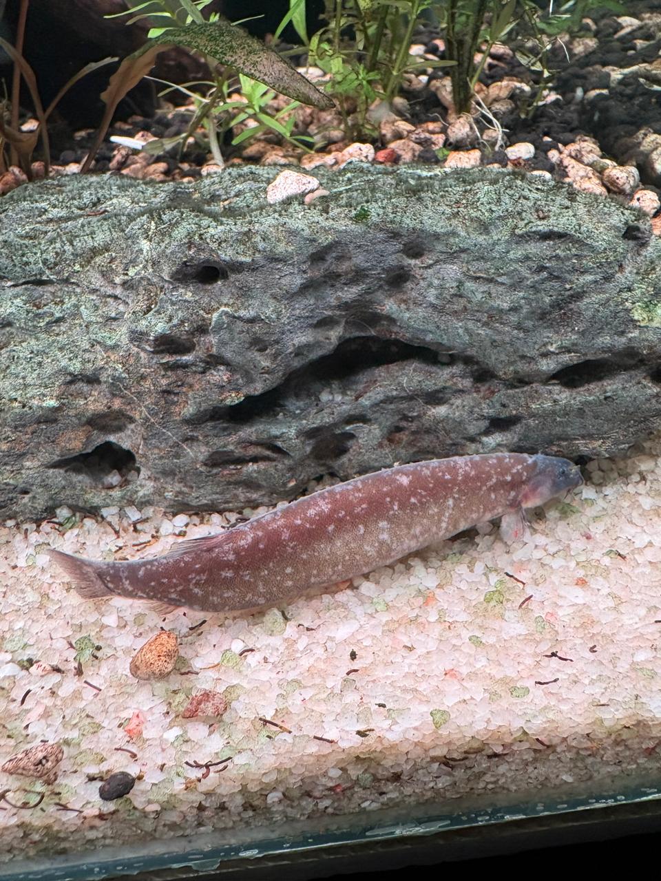 My kuhli did subsequently pass away, but I don't think there was anything I could do at this stage anyway. It came out of hiding after a deep clean (60%) the day prior. Everyone else is fine. It was one of my chonkiest kuhlis, and they hide in the gaps between by rock ledge. Do y'all suspect this is ich? It doesn't look like it to me, which was why I went searching in the first place. Hope this helps any other kuhli loach keepers who have something like this happen to them, too.