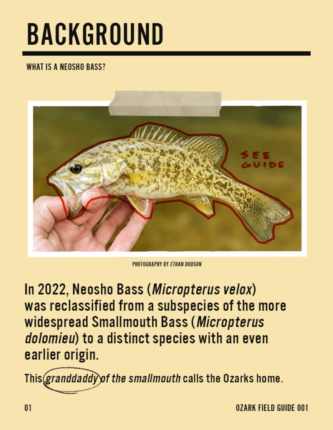 The series is worth a listen! Short version, they used to think this was just a subspeicies of the smallmouth, but in 2022, they elevated it to its own species. It's only found in the Ozarks and may even predate the smallmouth or be an ancestor.