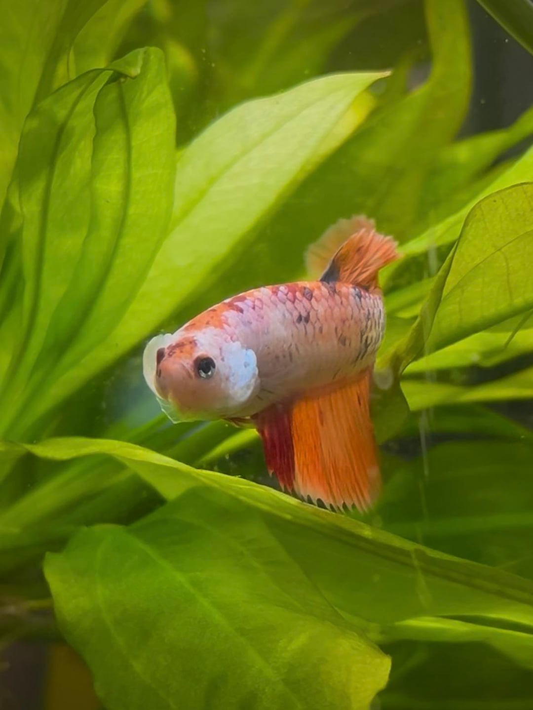 For context: my boyfriend and I inadvertently cycled a 3.5gal tank that only had a snail (Jalen Carter, not pictured) & Java fern in it. My dad, a life-long tropical fish enthusiast, is a dangerous man with an Amazon gift card in his hands, thus Lady Gaga become a new addition to our household about a month ago. Her Amazon listing described her as a “female half moon koi betta”. Lady Gaga loves to flare her gills, & she has made a hell of a bubble nest surrounding some n-joy pothos cuttings I put on the top of her tank. I recently acquired a 20gal tank that I will start cycling this weekend. Ideally I would add a school of ember tetras or some other nanos to the new tank with Lady Gaga. So this is where my curiosity surrounding her gender is coming from.