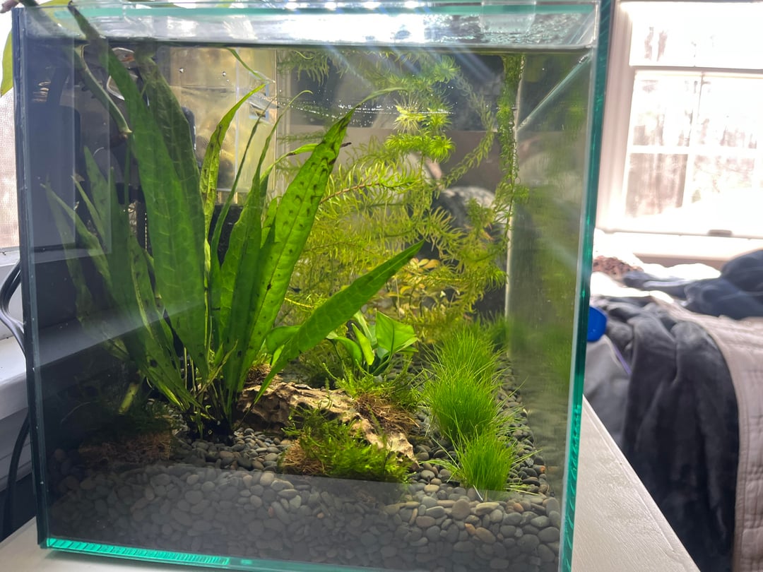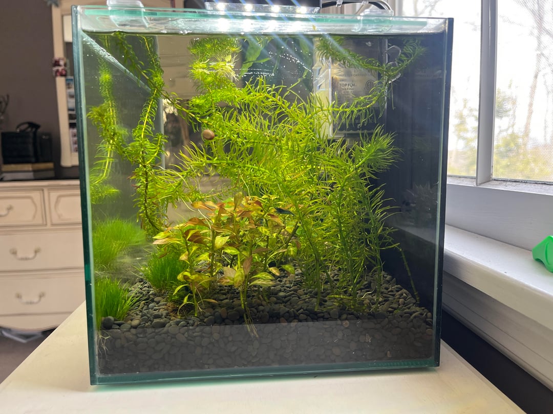 Hi guys! I currently have a 5 gal shrimp/ plant tank with 6 blue velvet neos along with a nerite snail and a mystery snail. I was thinking about adding a betta to the tank, but I know it can be a gamble with the shrimps being in the same tank. There are plenty of hiding spots for the shrimp because I have Java moss and grass, but I was just wondering what type of betta would be the best option and if male or female would be better (I’m thinking male because females tend to hunt more). I would want a dosile and slow betta, but I know there individual personalities varies.