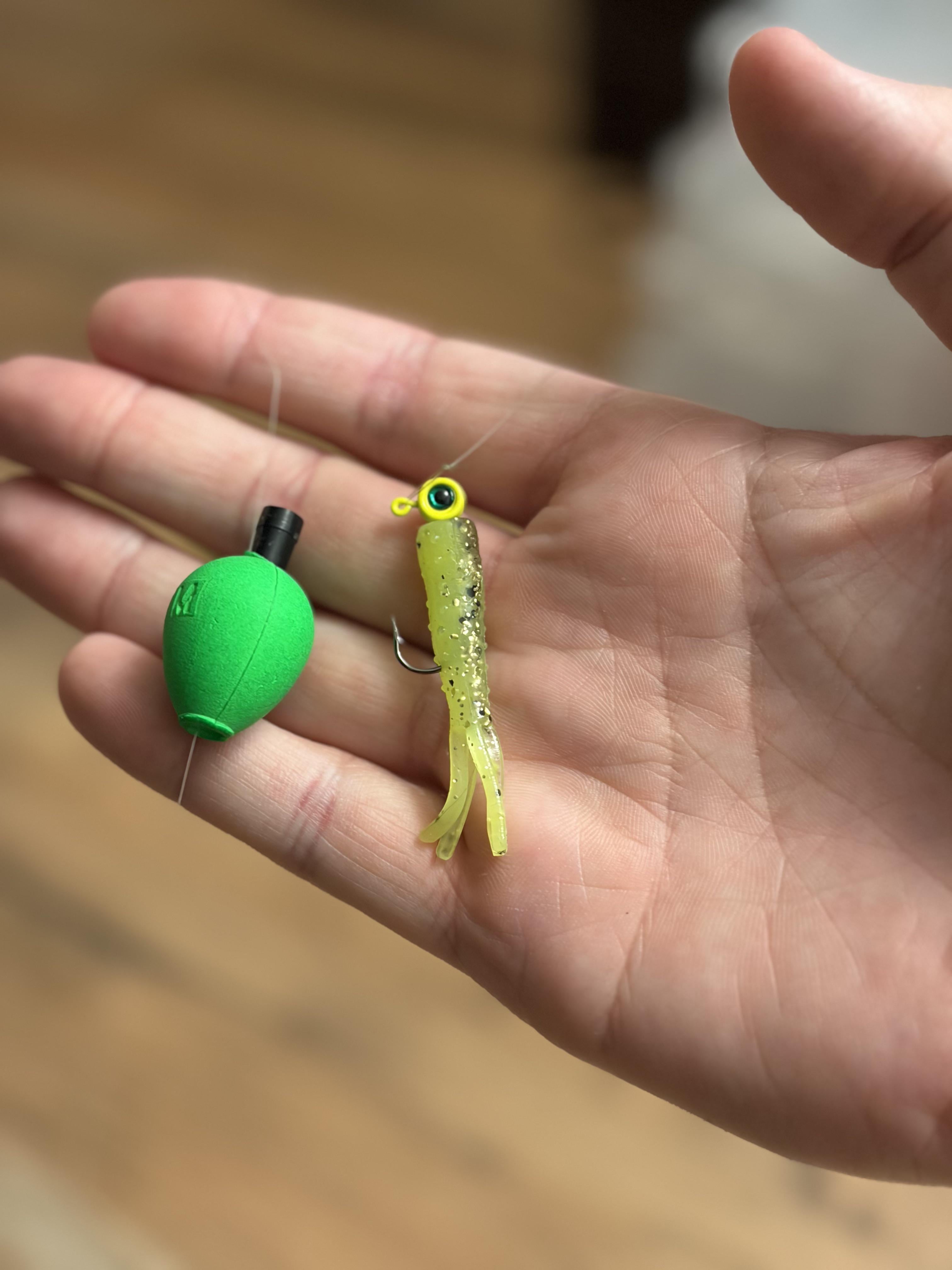 •1/32 ounce acc crappie jig head in chartreuse •Paired with 1.75 inch Zman Ticklerz in space guppy •I throw it on a 8ft acc crappie stix two piece rod Posted by snjfishing