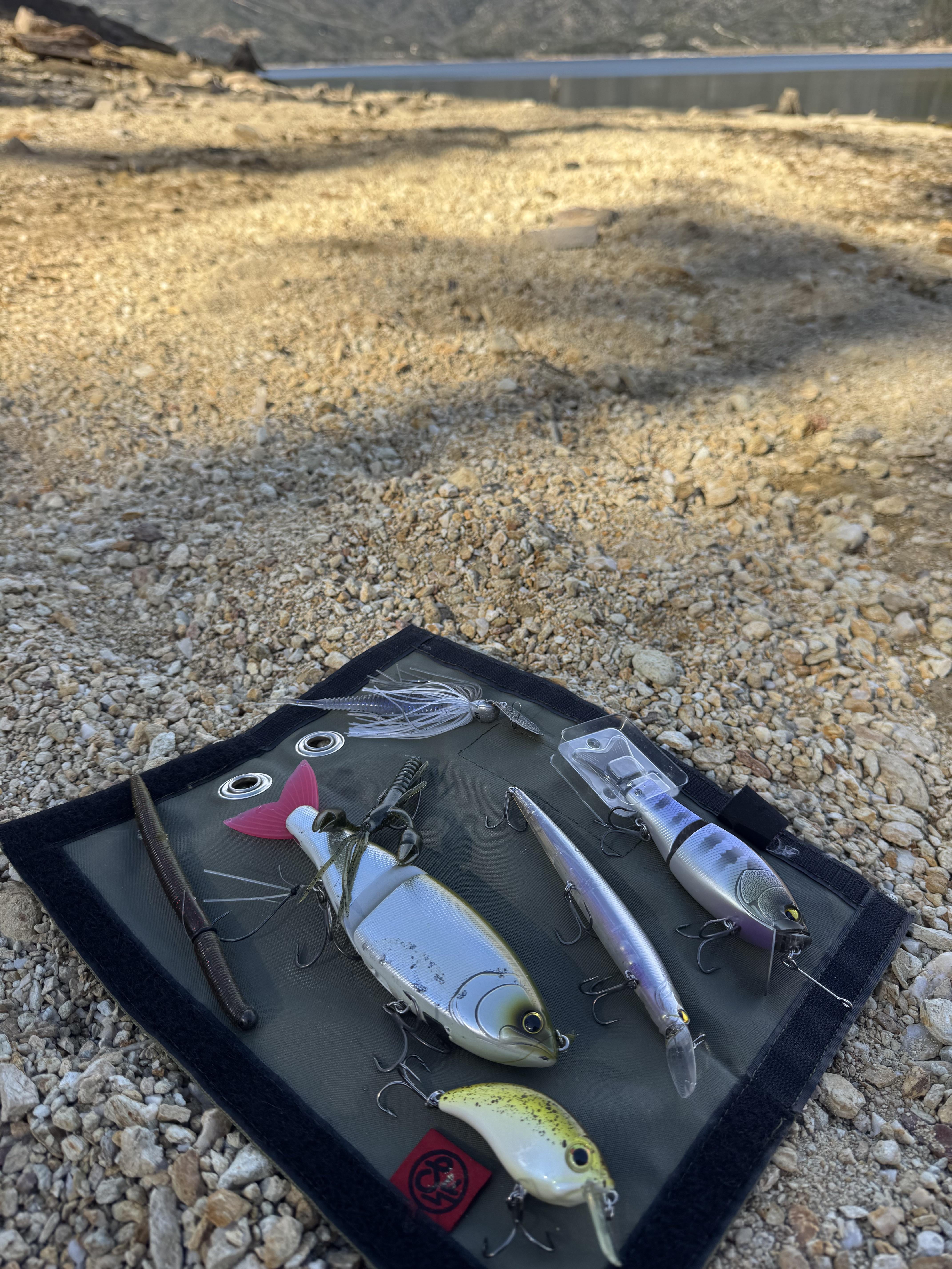1/2 evo – spunk shad Raid GI gill Raid level minnow plus 4”osp craw Glidway 176 Atv crank bait Senko – Neko Posted by Proper_Chance2042