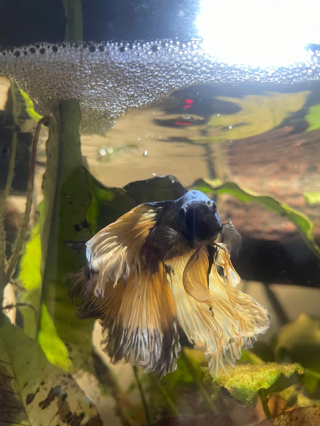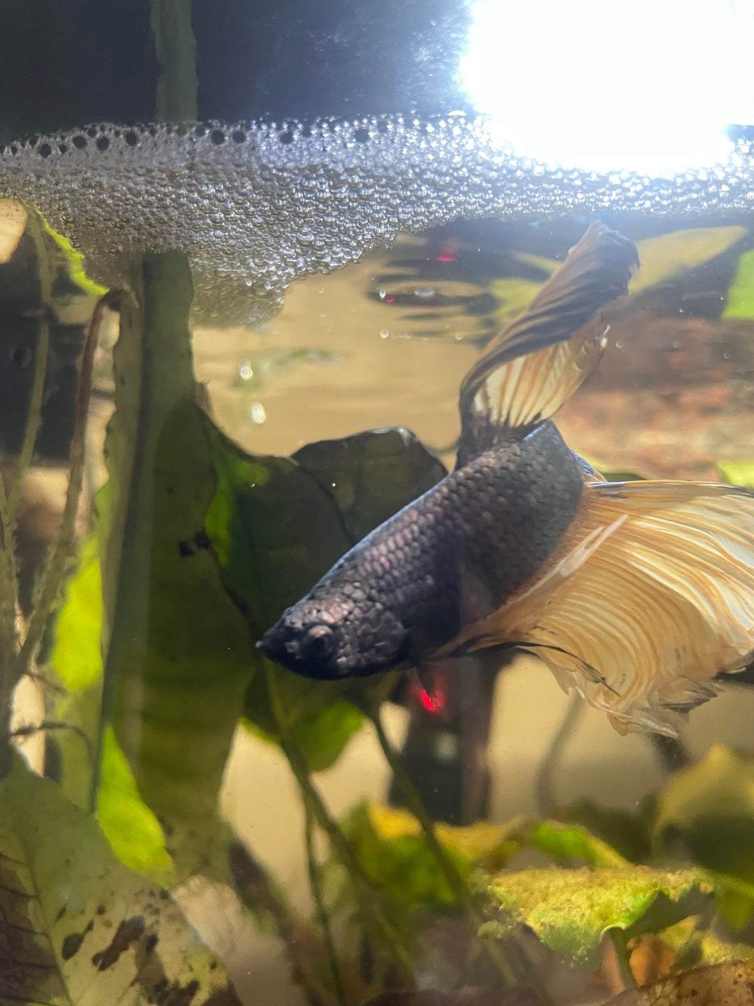 I’ve had him for 2 years now, and recently he’s started slowing down. I’ve kept and loved many bettas before him, but I’m certain I’ll never find a “stray” again so I wanted to share his story as I think he’s on his way out. His name is Buzz, and he lives peacefully with a snail (named Zoom) and loves making and guarding bubble nests. The last pic is just an extra thick nest that I was proud of 😅 they don’t cover a lot of surface area but he’s done some thick ones lol