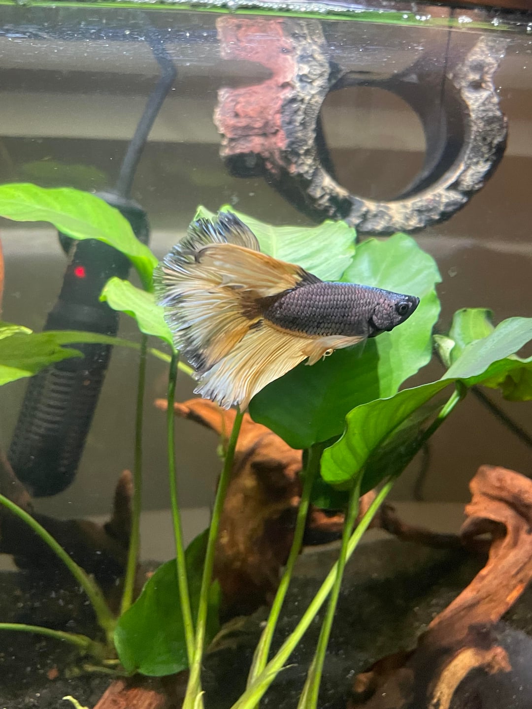 I’ll try not to be as long winded as I can be, but I wanted to show off my betta, Buzz. I found him abandoned in a cup on the sidewalk outside of my work. I also don’t work at a pet store. Really random but I got to take him once it was clear nobody was going to claim him. Because of this I have no idea how old he was when I found him, just that he was already mature.