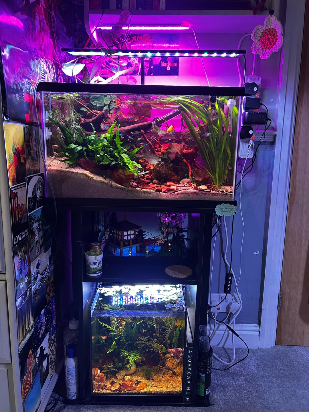 Currently have a co2 tropica set up and feed twice a day, a variety of foods.