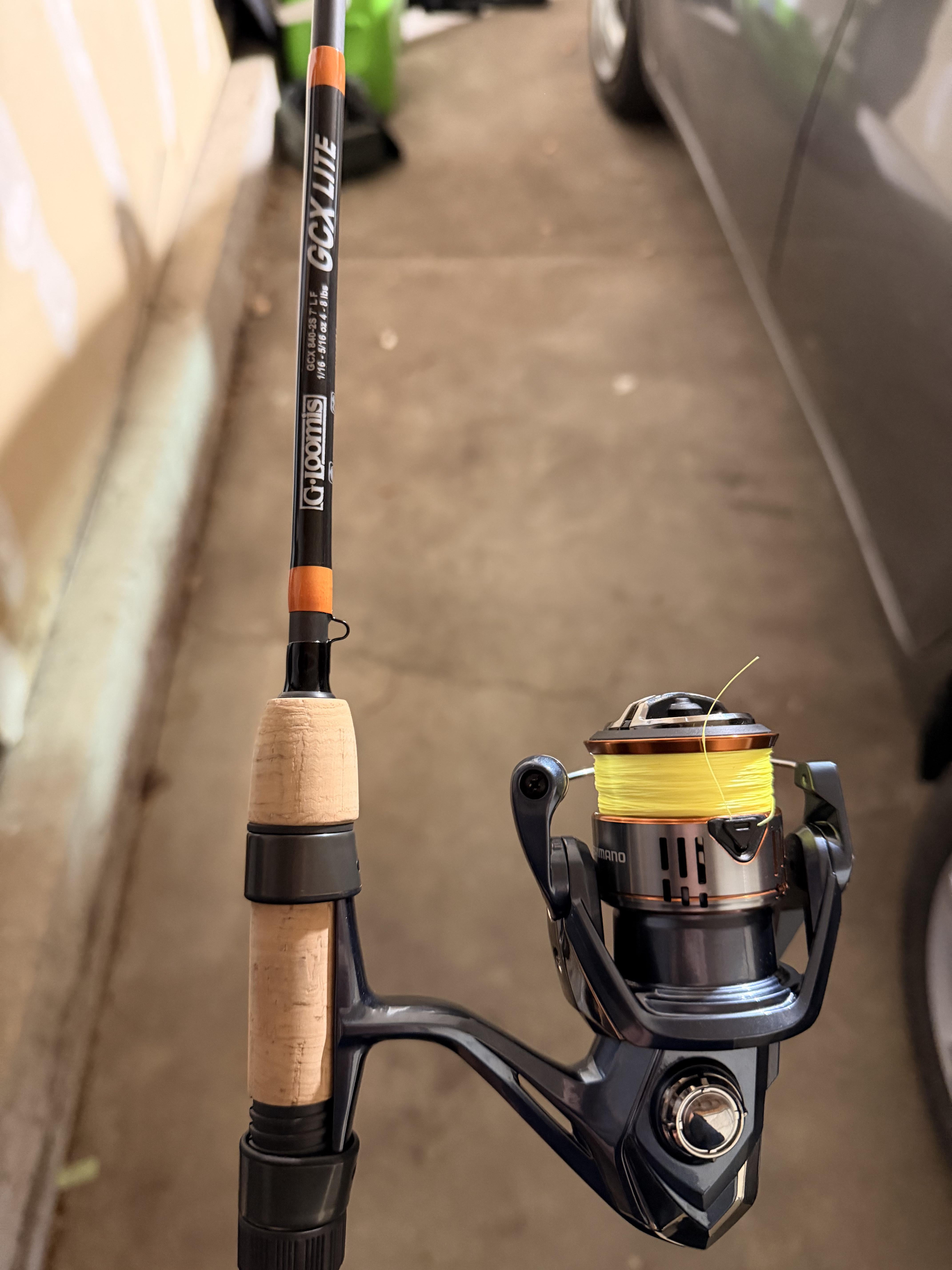 This is my new combo, I’m gonna use for light spin fishing in Colorado (mainly trout). I usually carry a fly rod, and a spinning rod when I go fishing and I swap between them when I get bored with one another. (7 ft g loomis gcx light, shimano nasci 1000)