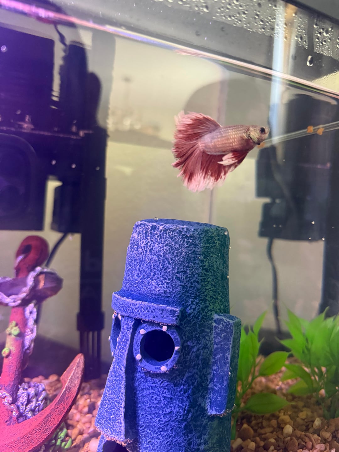 He was reclusive a few days ago, but now he’s happily swimming around and seems to be getting accustomed to me. Needless to say it’s been a good learning experience! I got him in a 10 gallon tank just need to get some live plants/driftwood for his tank!
