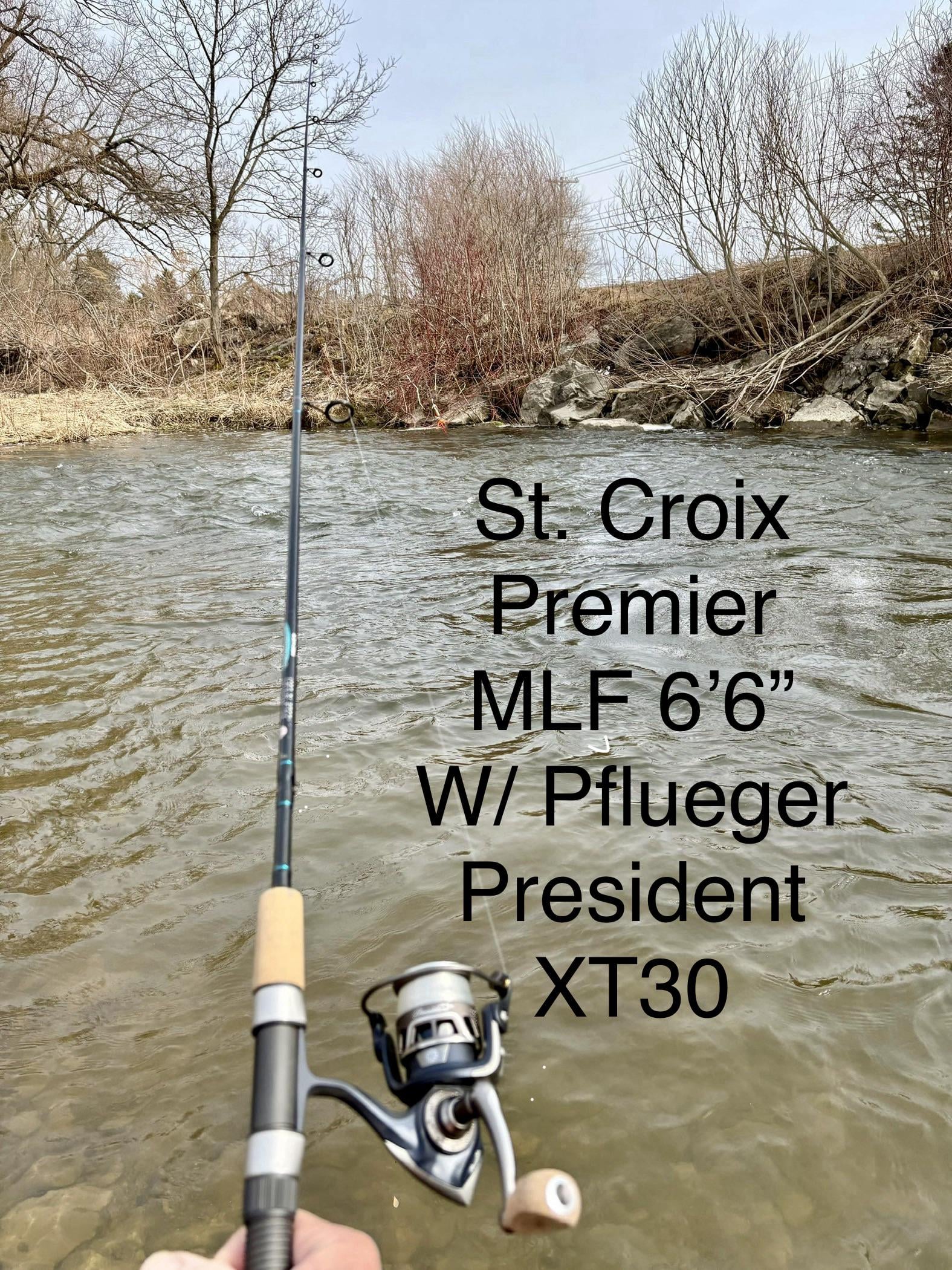 I have been trout fishing for the last few years with a 7’ medium Fenwick rod. I decided to add some quality rods and reels of various sizes for location specific purposes (small creeks, medium tributaries, and Great Lakes). First up is my St. Croix Premier rod MLF. This is my medium range trout rod for average size streams. I didn’t catch anything, but the sensitivity and smoothness of both the rod and reel were quite impressive. I can feel the money I spent. Can’t wait for spring weather so I can hit the creeks harder.