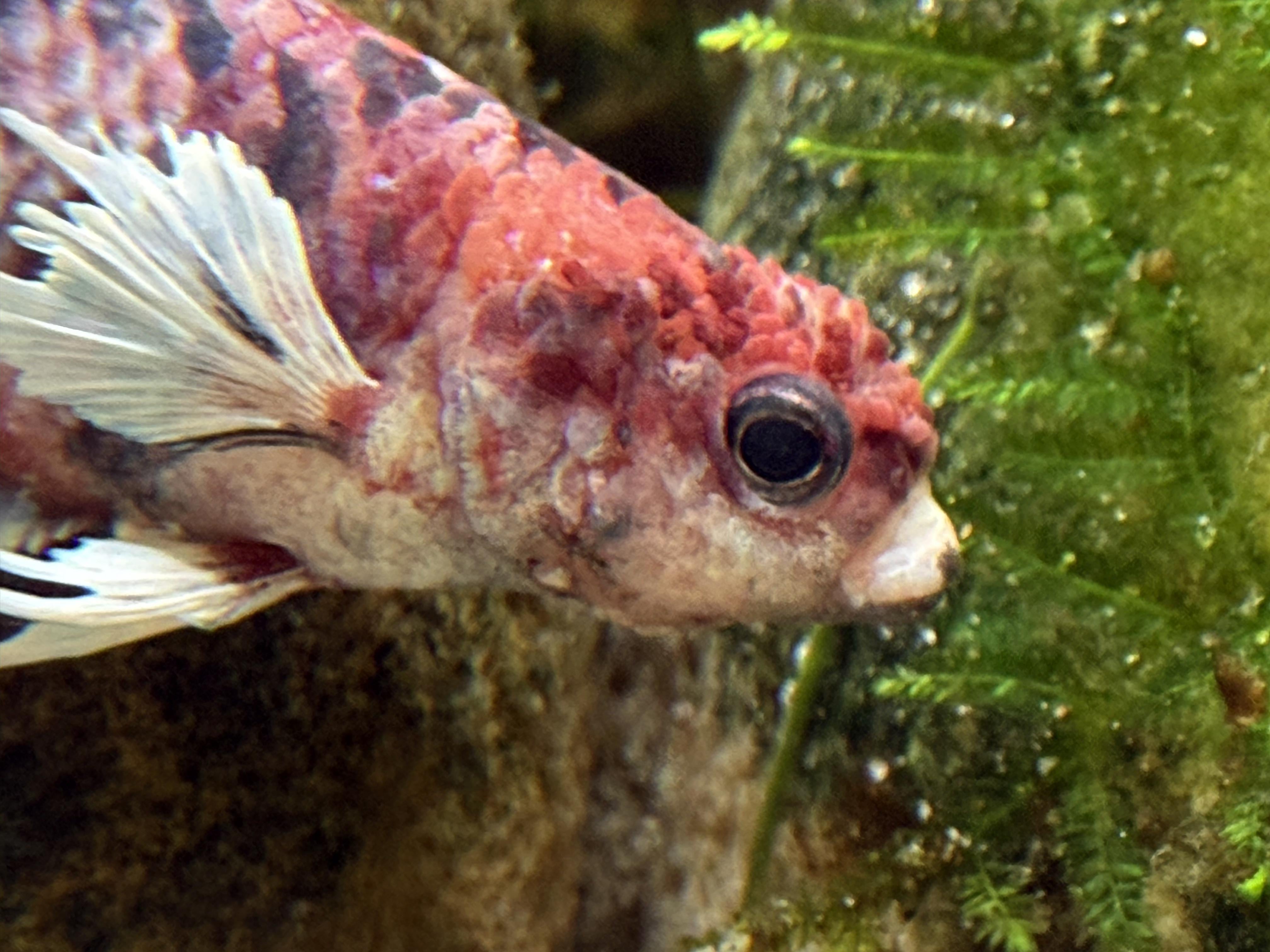 I’ve tried antibiotics and the water is perfect. I use RO and I have a reef tank. This tank is a couple years old. I have other female bettas in the tank all rudely healthy. This has been going on for a month or so. Her head seems to be growing these weird lumps and bumps. She sprints at the surface and gasps for air. I added leaves do tannins. Two different antibiotics. What do I do? What am I missing?