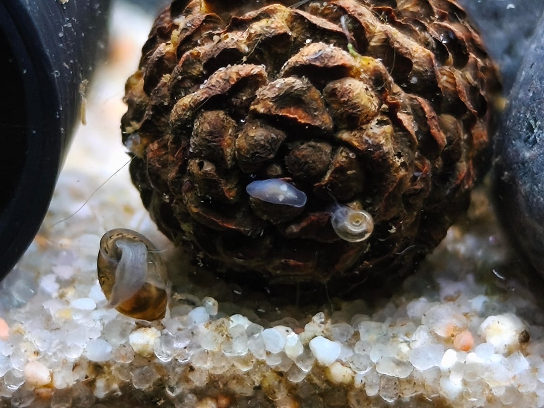 Hi guys. I'm cycling my tank for about a month and a week and this little creature (in the center) start appearing on my tank. Not many for now. Is it what I think it is🥲(Planaria) Plz help me identify it… Posted by Log0n08