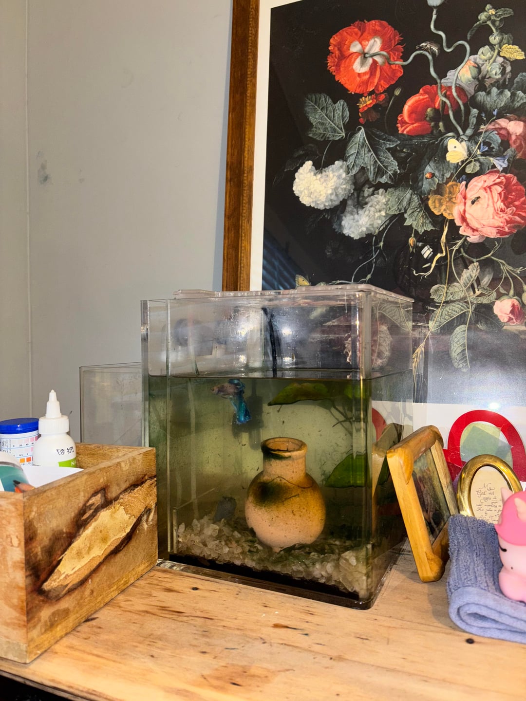 For context: I haven’t been able to take care of my betta for weeks due to personal conflicts and this is now the condition of his tank. I don’t have the money to buy a bigger tank and give him the life he deserves but I do love him. Should I post him on Facebook marketplace or try to revive his tank on a budget? Before the plants were completely fine, no rotting, and minimal algae but I haven’t had him for 3 weeks. I’m depressed as well and feel as though he might be better off with someone else but who knows who he’d go to. What to do? If you recommend keeping him then what can I do to fix his tank? Thanks in advance:(
