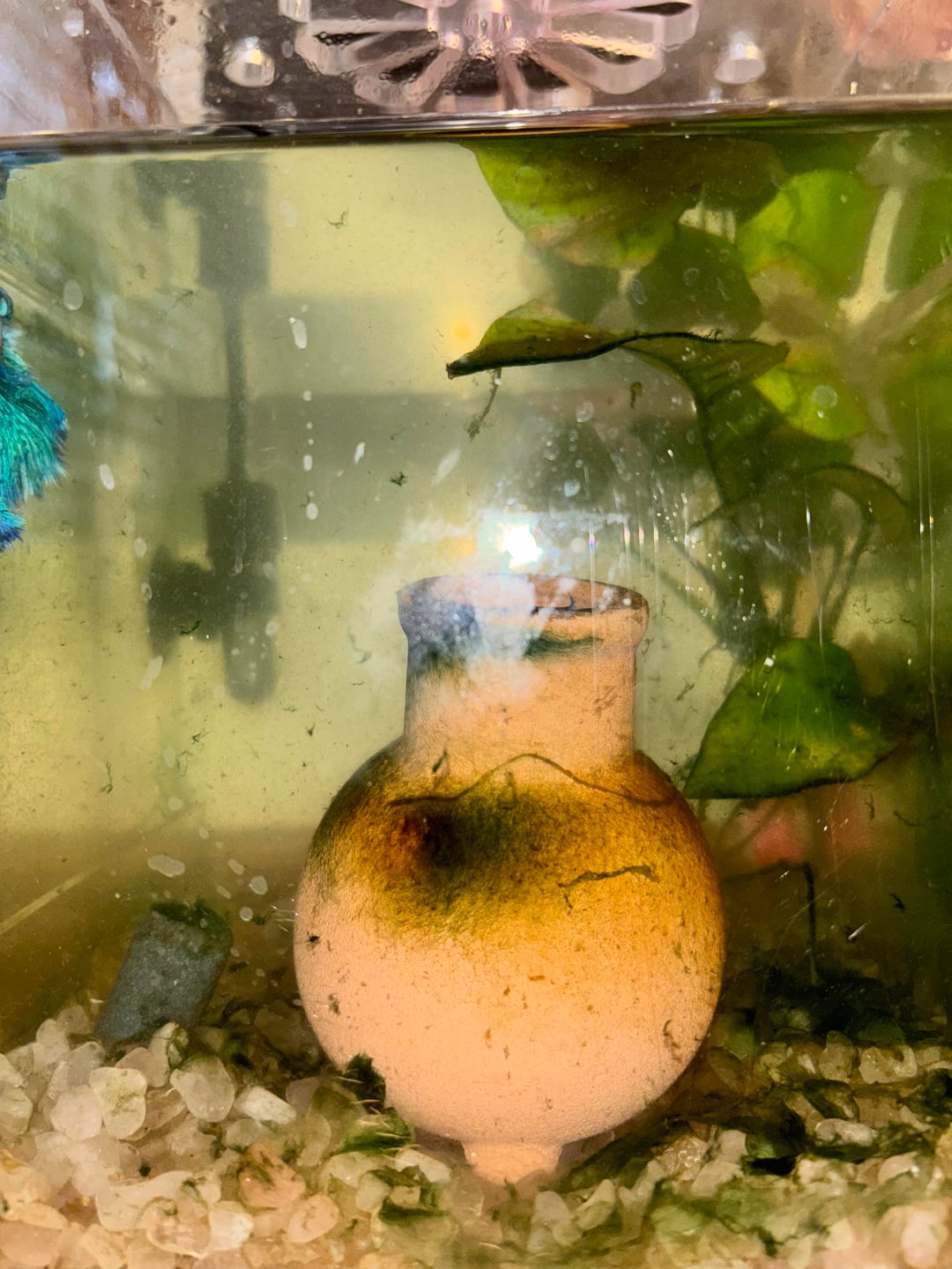 You got this! that’ll clear up with some water changes just take your time. That tank is interesting, is the back part to the left of the first picture like a built in partition? that would be awesome to stick some pothos or other house plants into, anyway you never know who’d come pick him up and you already care enough to be worried so i think he’ll be good