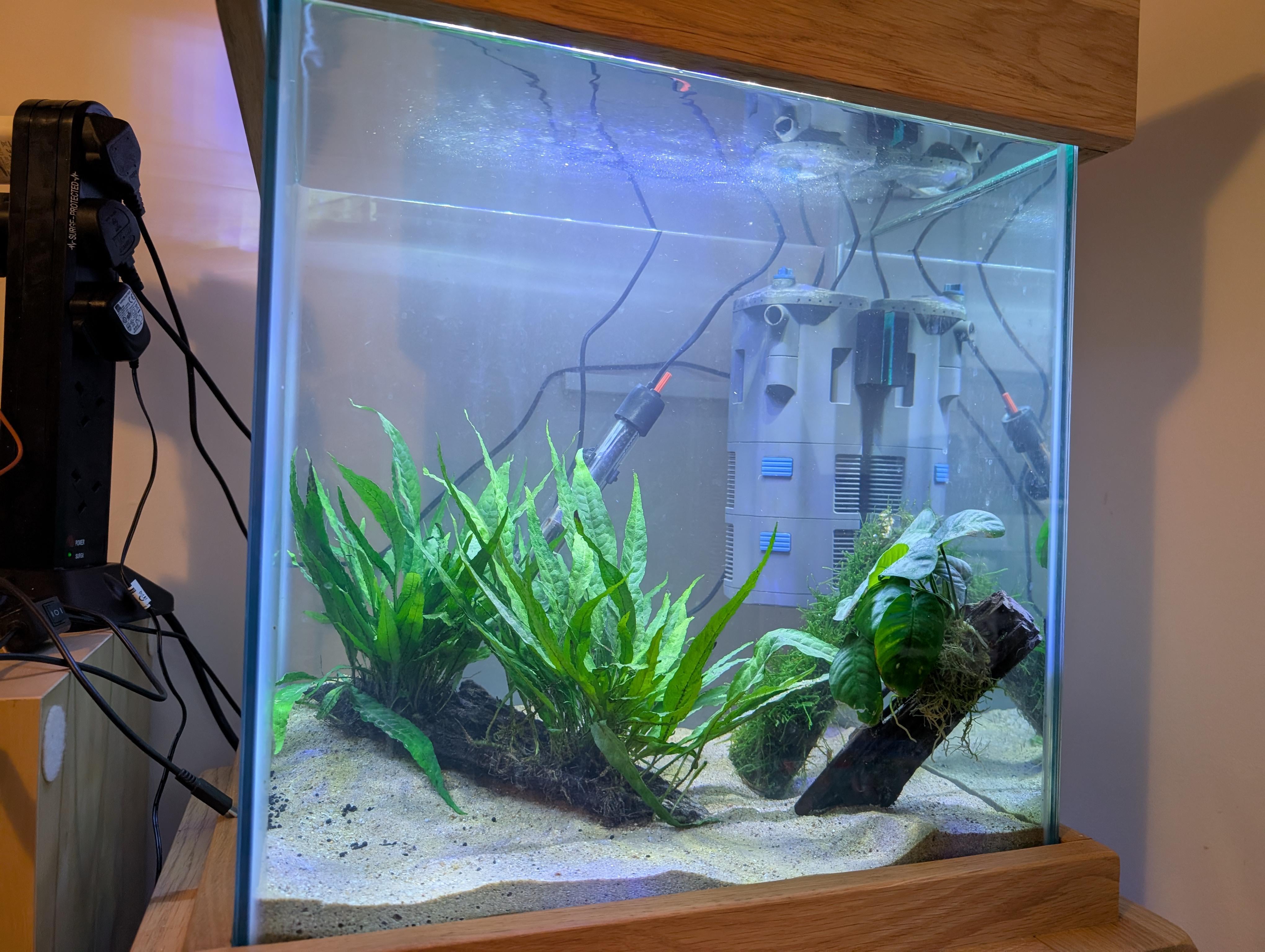 After a long time of not being able to have my tank due to personal circumstances. It's finally back and cycling! Can't wait to add some fish to it! Think I still may move around where the driftwood/plants are as you can't really see the mossy piece of wood! Tempted to find some floating plants with long roots to fill up the top section.