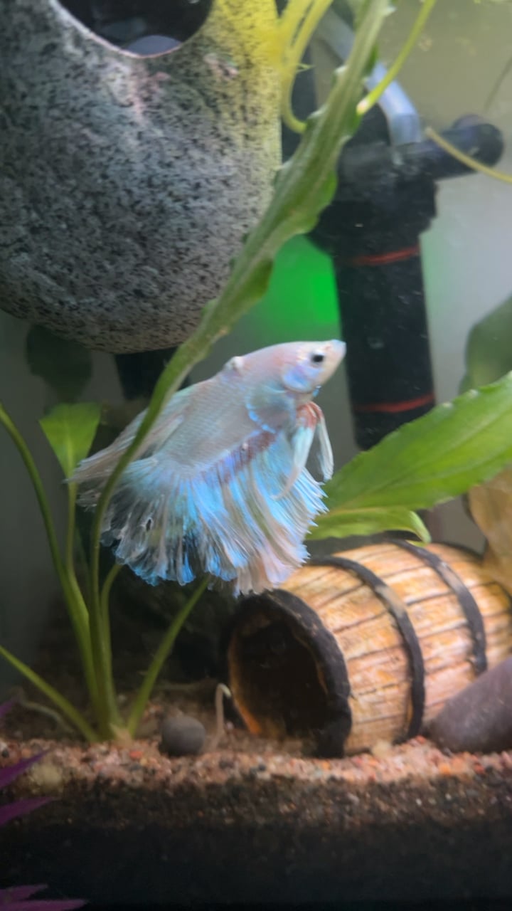 Got this guy a few months ago and it became apparent that what seemed as only just a lifted scale turned into a huge tumor that opened up into a wound. I’ve taken special care of him and now the wound/tumor is healing beautifully and though the tumor will always be there he doesn’t let it slow him down one bit. His fins were so small and clamped and he was so pale when I first got him and now look at him. Beautiful fluorescent fins with pinks and blues and even a red streak. Everyone meet Glacier!