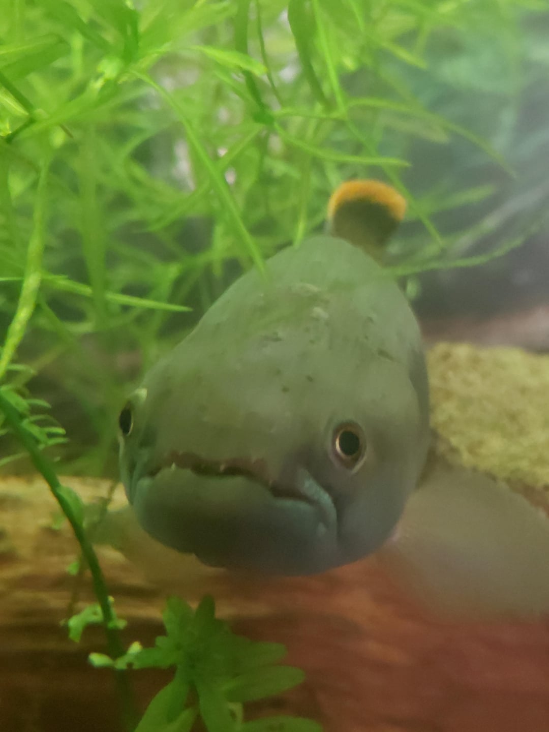 This is Donut, Donut is usually a gluttonous vacuum cleaner eating anything that is presented to him. Well for the past week he hadn't been eating anything that i would give him. Frozen goldfish, worms, crickets, etc. Well today I thought maybe he was just being picky and decided to grab his favorite food which is shrimp. Thaw a shrimp for him and he practically bulldozes through the plants and swallows it without hesitation. Turns out hes just really picky.