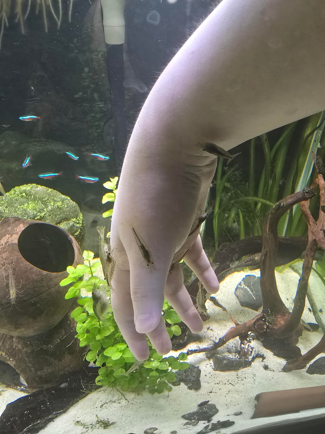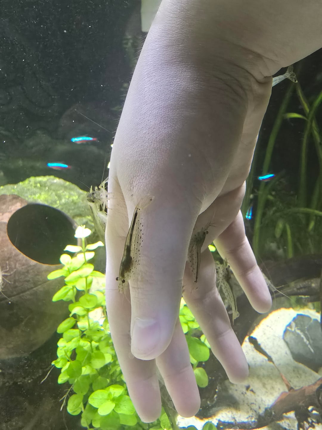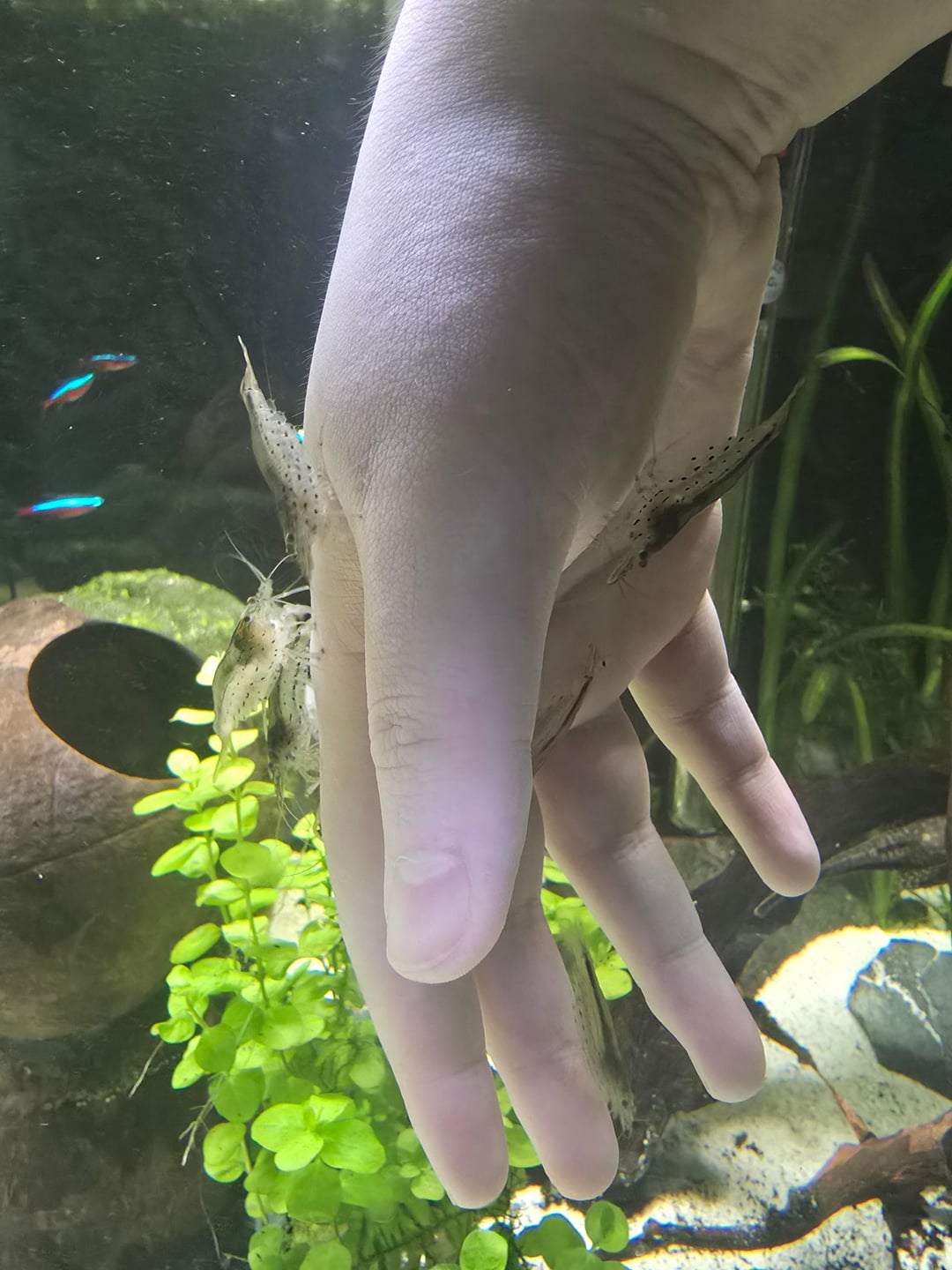 shout-out to the one glass catfish that fucking hates me that kept (fruitlessly) biting me and pissing the shrimp off