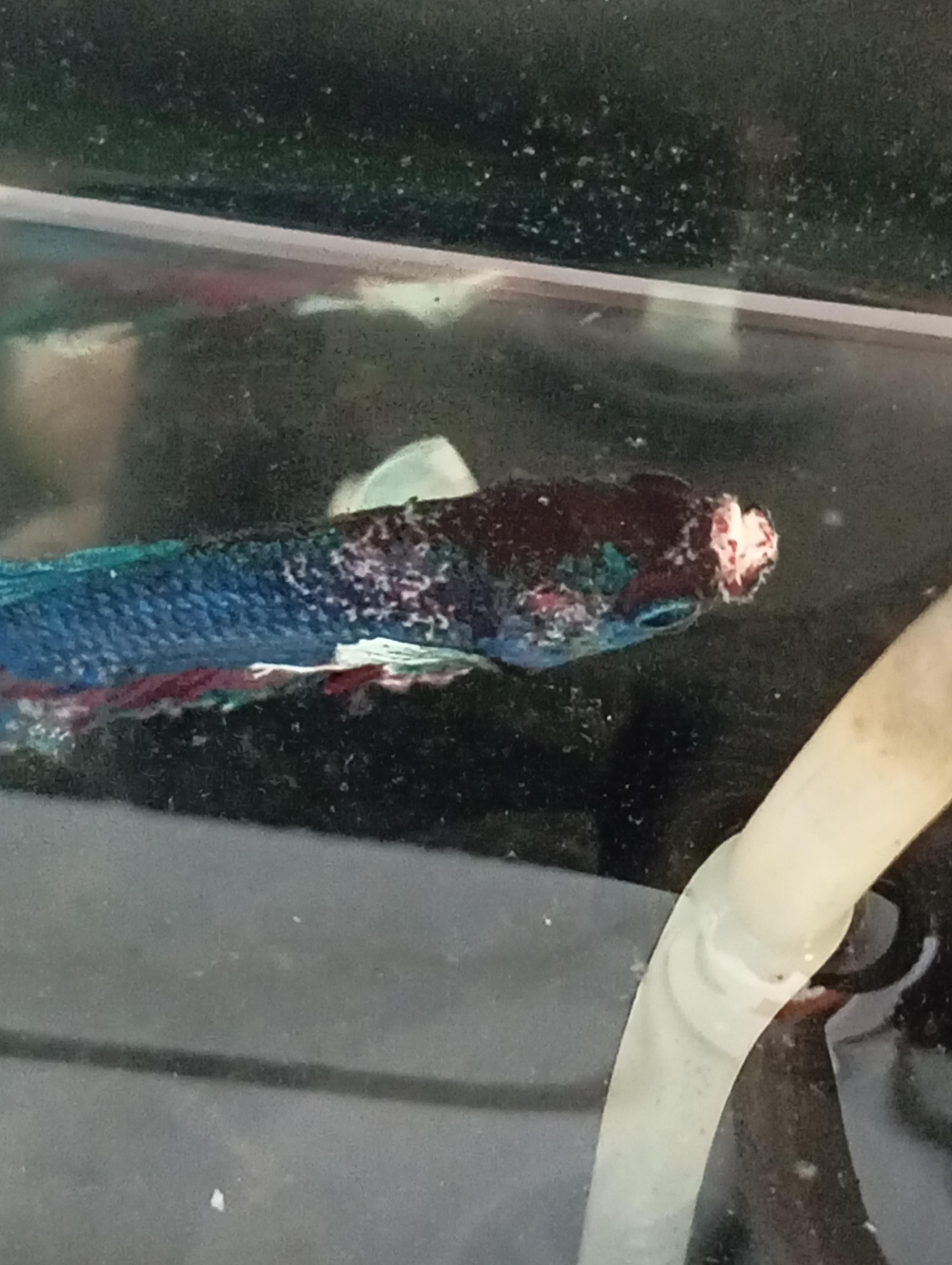 He was doing great until I did a water change yesterday. Must've accidentally caused a crash because my nitrite is at 0.5 ppm… Sorry little mate. He's currently got white stuff on his head, some on his mouth and a little bit under his tail, the bottom of his belly also seems a bit discoloured. I'm doing a water change now, but I'd like to know what kind of infection this is and how to treat it! He's alone in his 5 gallon tank at the moment, and is fed 4 pellets a day. I do not have a heater as temperatures where I live has never gone below 25°c, but I do have a filter and other equipment.