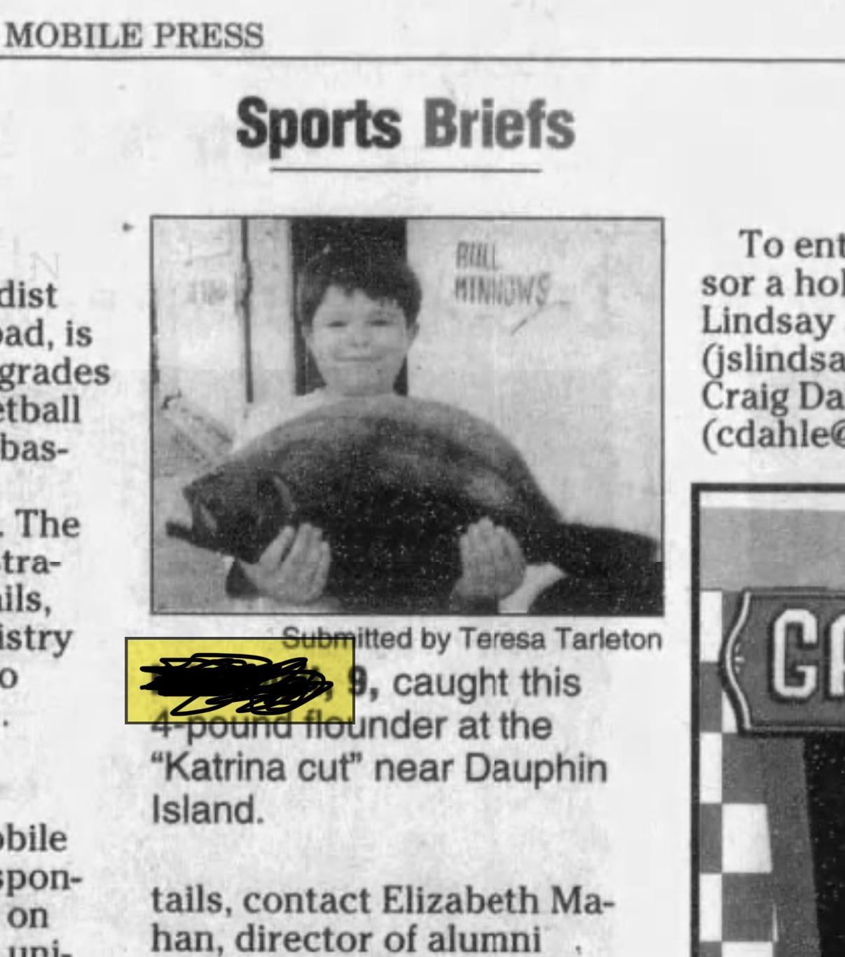 Another old pic (sorry for the quality) i found online from back in 2009, caught this 4lb flounder and weighed it at Jemisons bait shop down on dauphin island. Random woman asked to take a pic of me and it ended up in the mobile newspaper. I was proud of this founder haha