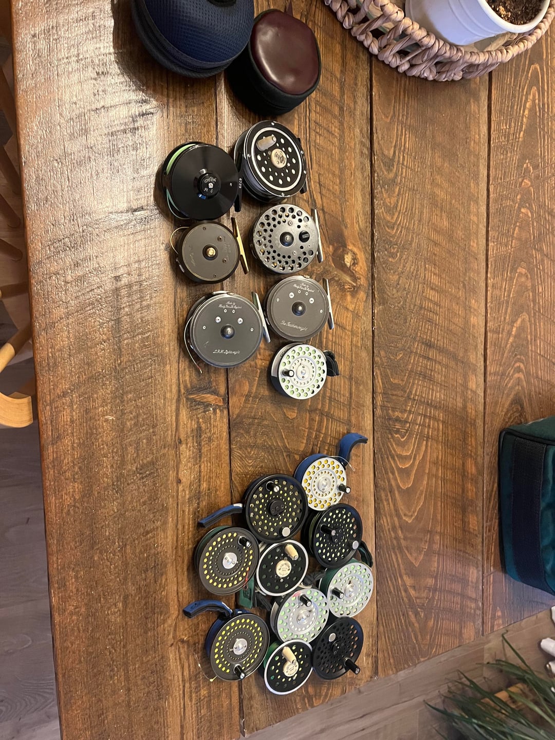 I fly fish a lot, and have been tying flies and building rods for years. Apart from heavy or salt water rods, I’ve never given too much thought to reels though, and usually run them on the cheaper end for 5wt and under. A relative who was hardcore in his younger years fishing in Appalachia recently passed away and I inherited these guys. Just wondering what I’ve got here. All Hardy, Orvis, and Abel from years ago with one or more extra spools for each. I’ve been told accompanying rods are en route and I’m terrified….