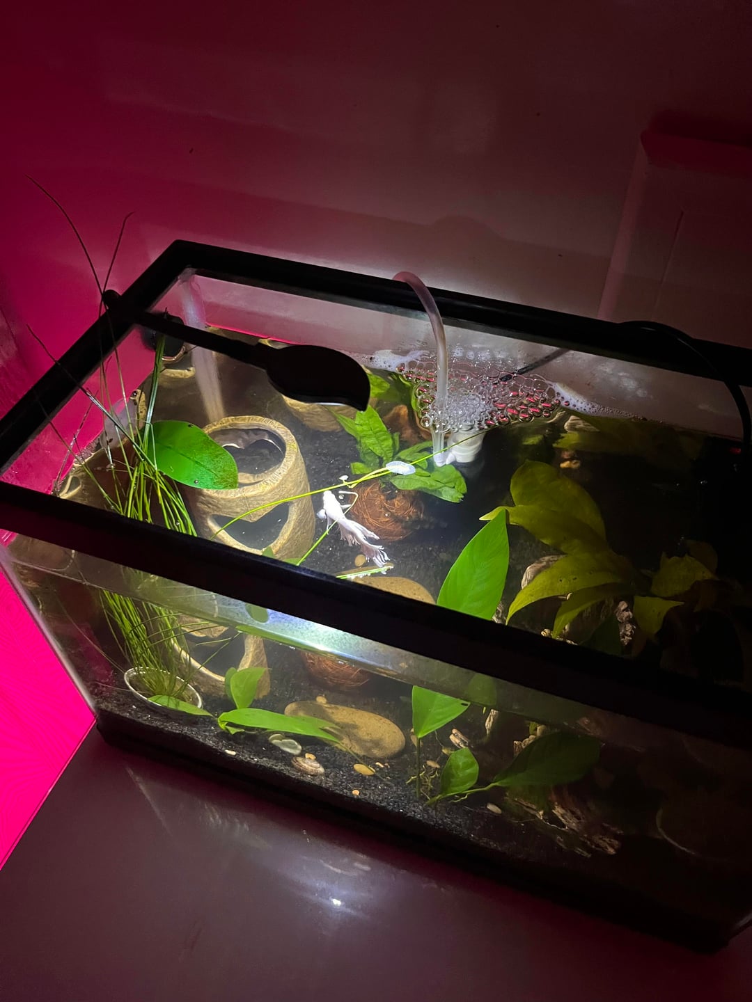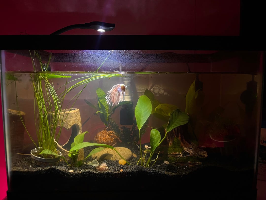 fishy is beautiful, overall 7.5/10 (just add more plants, fill up tank the whole way, add a lid if you don’t have one, and some floating plants and it would be a 11/10!)