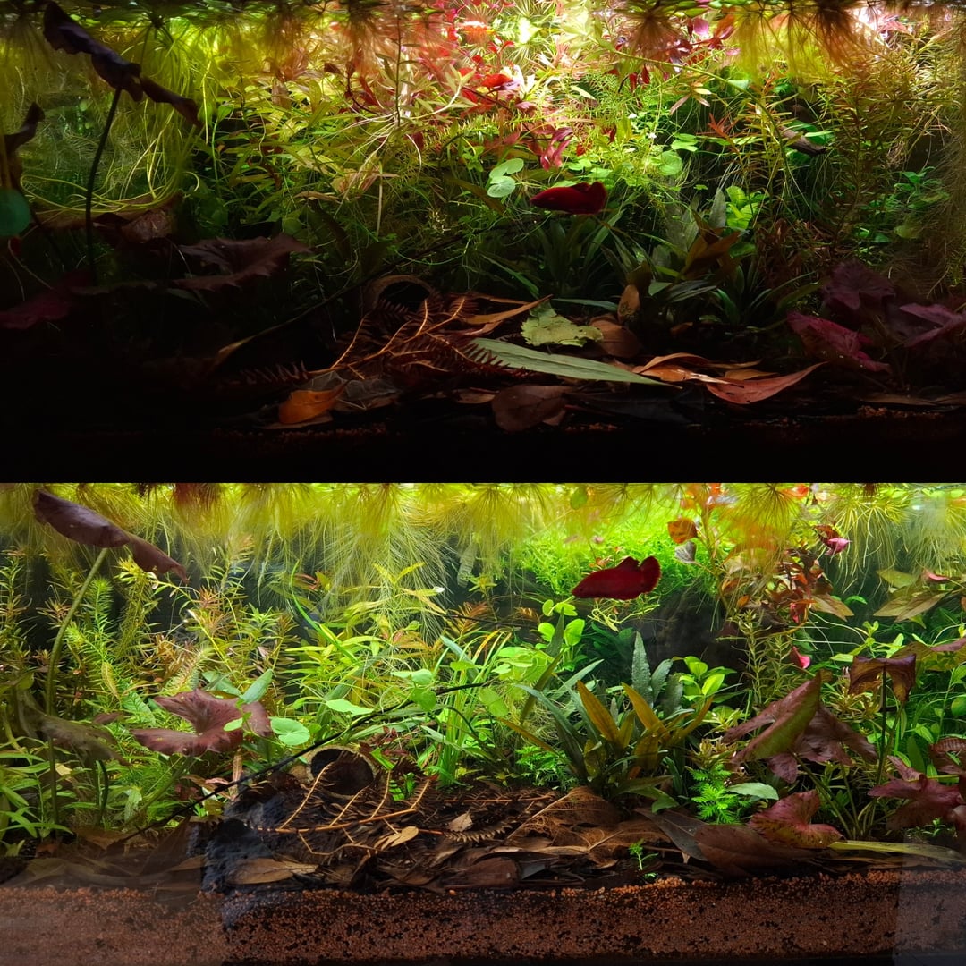 Ended up ripping it all out, cutting, and replanting. My son refused to come out for the rest of the day after, BUT it was long overdue. The plants were so entangled that light trimming made no sense and wouldn't have helped anything. But it will grow back in no time, better and healthier even. 🙂 After that, turned the day into a tanks maintenance kinda day on all the filters too, scrubbed the sponges and even the impellers, which I literally never do for some reason, added more peat to the 35g, etc. Everything is running at full speed today lol