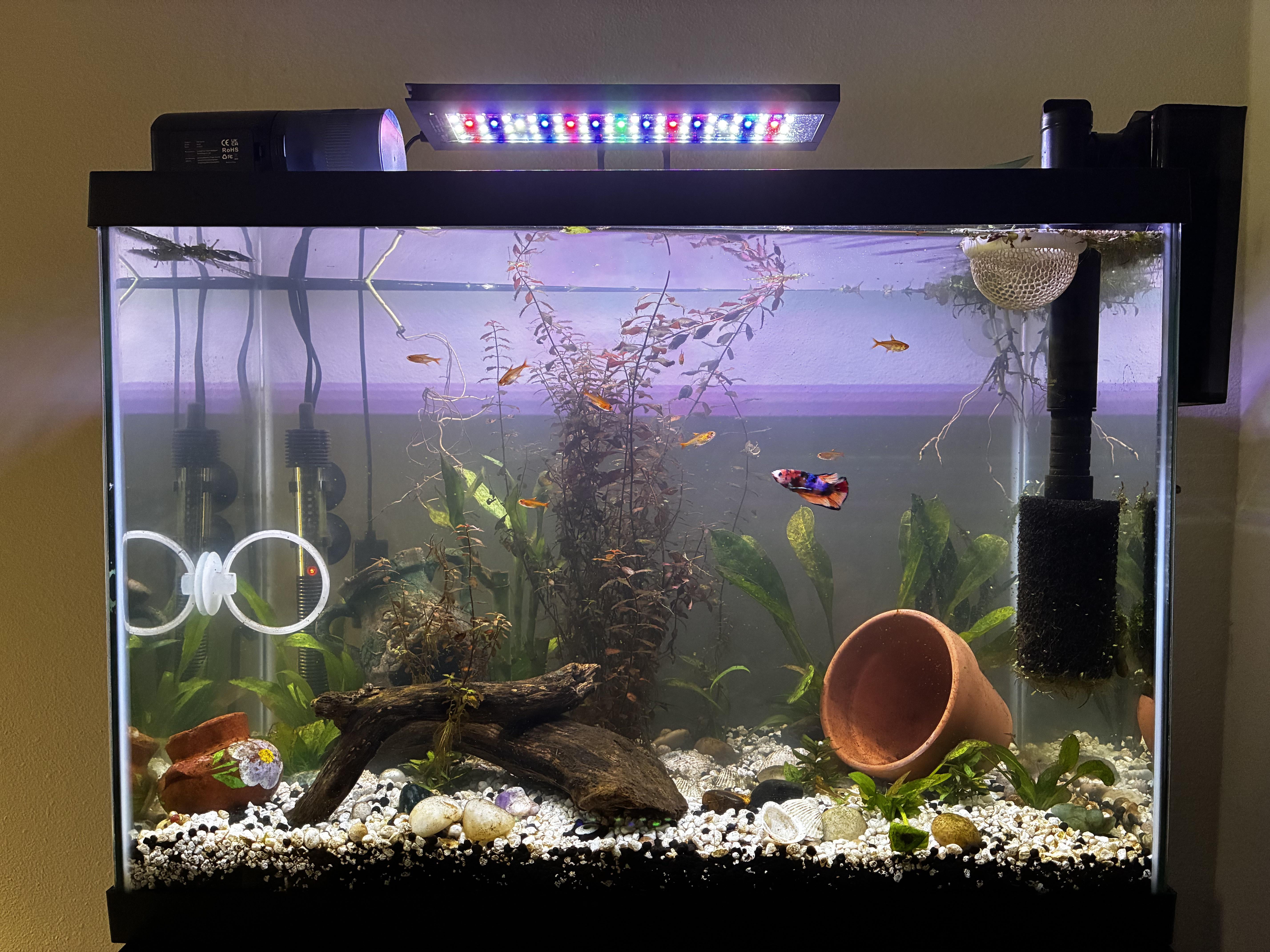 For context I have a 20gal with 10 ember tetras, koi betta and 6 corys