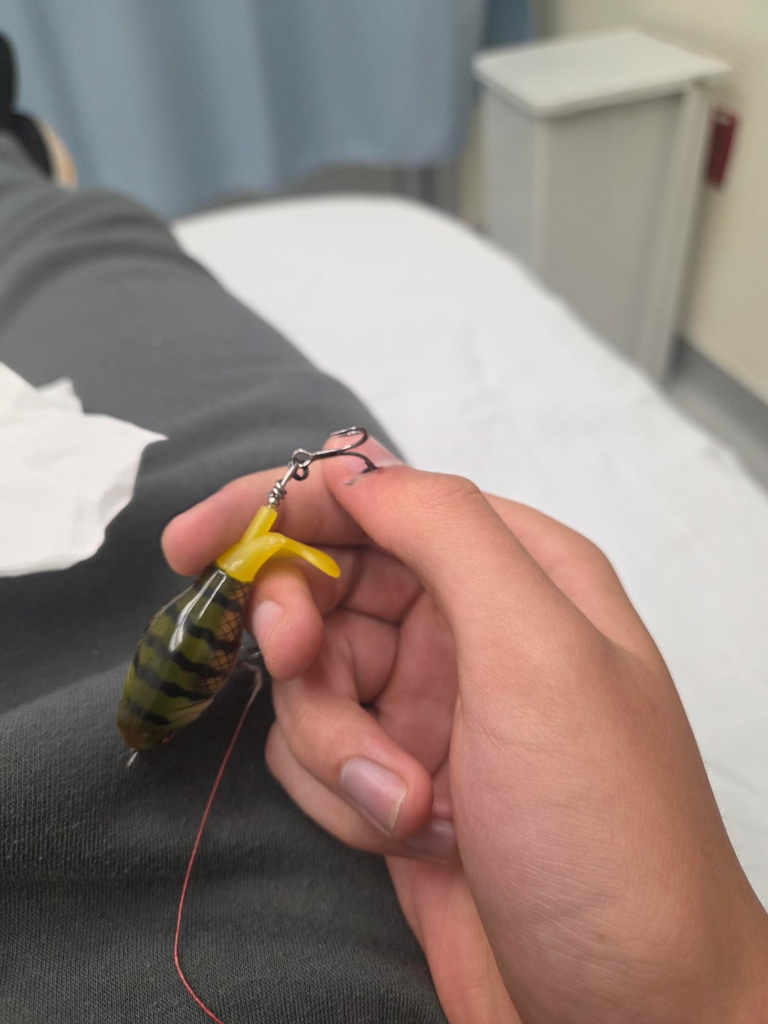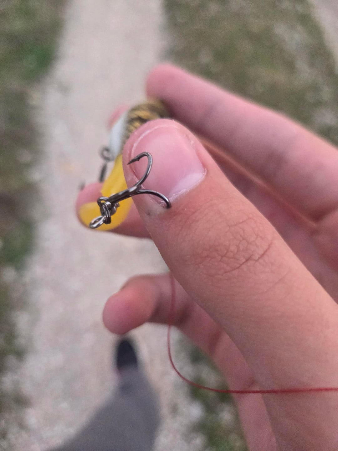 was fishing a small pond and a bluegill decided to bite my whopper plopper, I made a video saying how bad its gonna be to unhook, 20 seconds after the video, flopped around, whopper plopper to the thumb, went to the er and they got it out