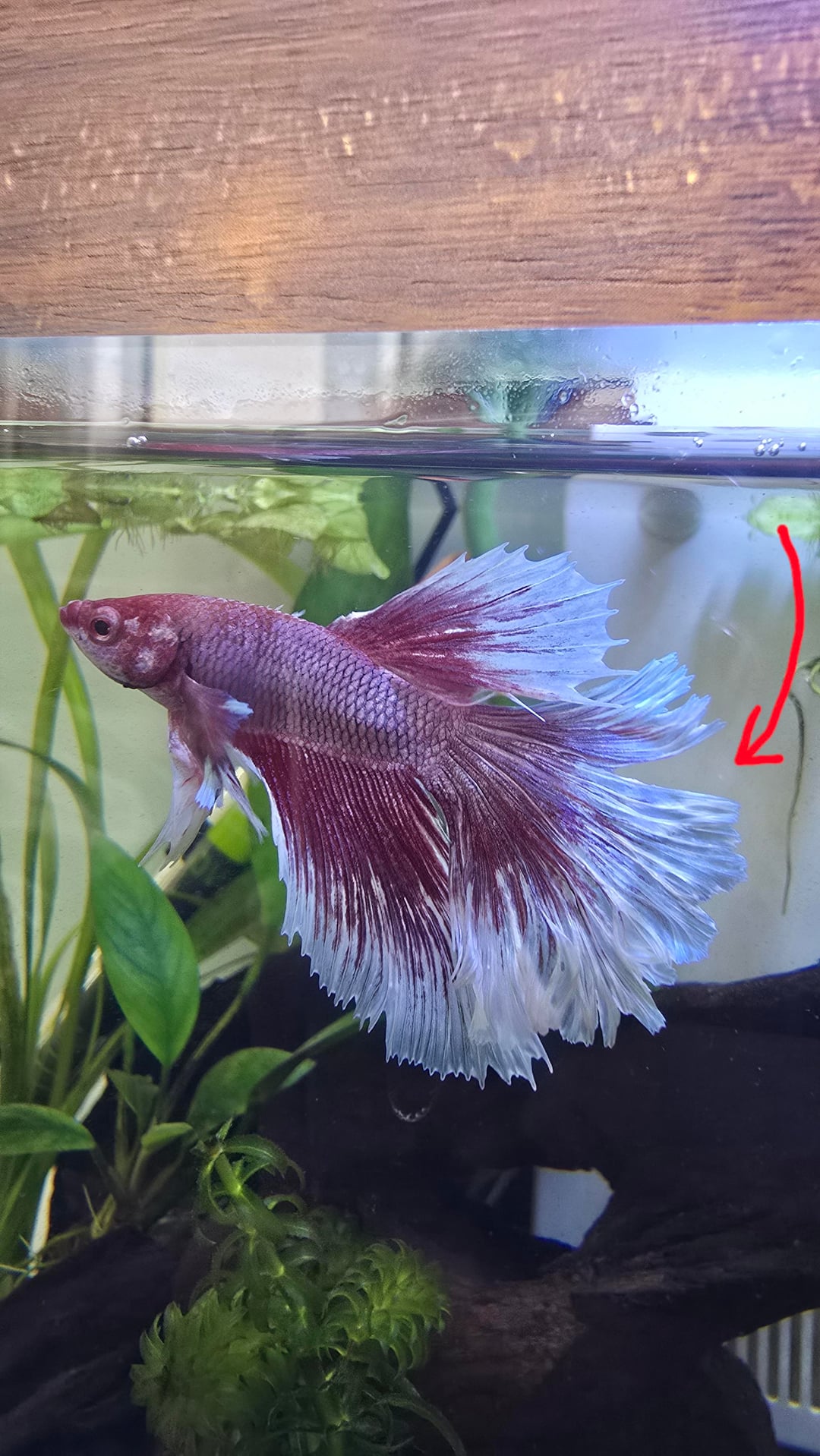 I posted about my boy a little while ago, when he had gotten a cut on his tailfin (https://www.reddit.com/r/bettafish/s/egm1o03j5z). Since then, he seems to have gotten much worse.
