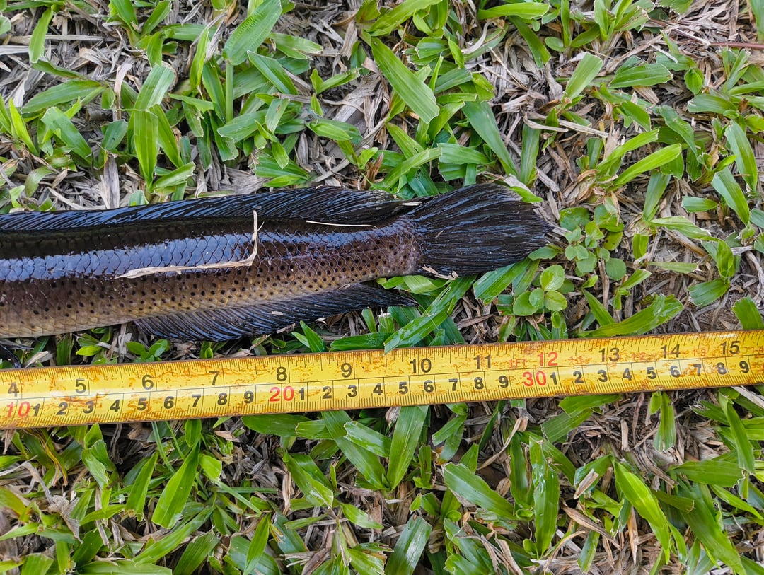 Baram Snakehead (Channa baramensis), a native species only found in Sarawak and Sabah, Malaysia. It may look small compared to other snakehead species, but from what I've read, they usually range from 18-20cm, so this 31cm catch is a massive specimen of its kind.